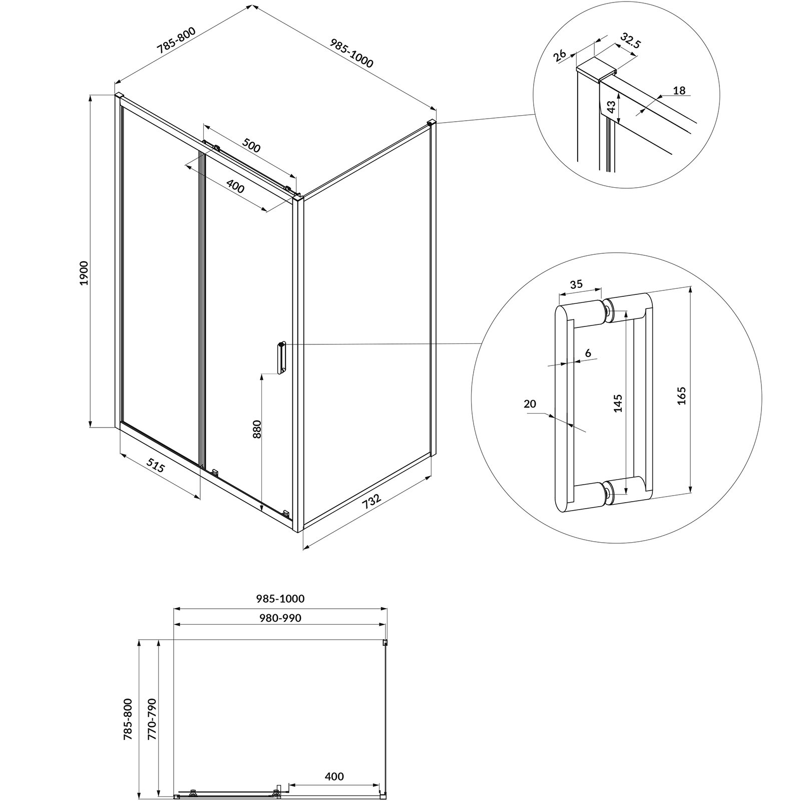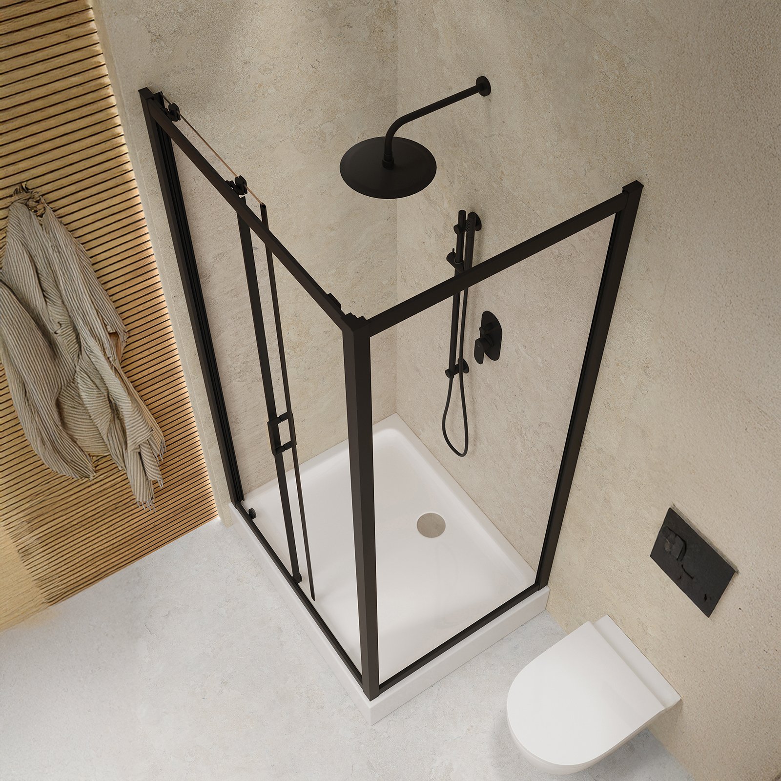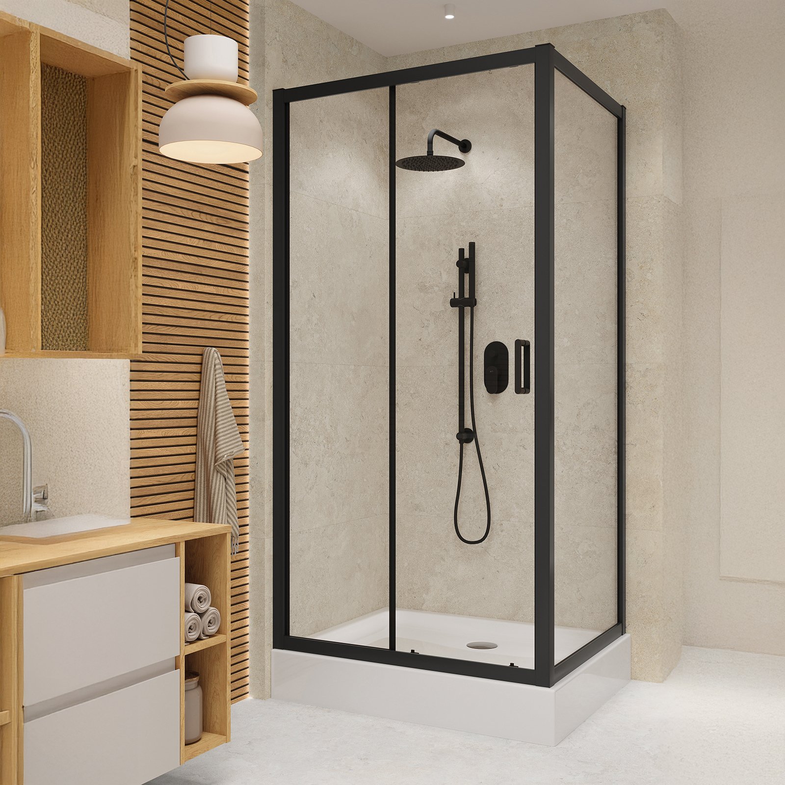 Zestaw kabina ARTECO prostokątna 100x80x190 czarna z brodzikiem TAKO 100x4 biały.