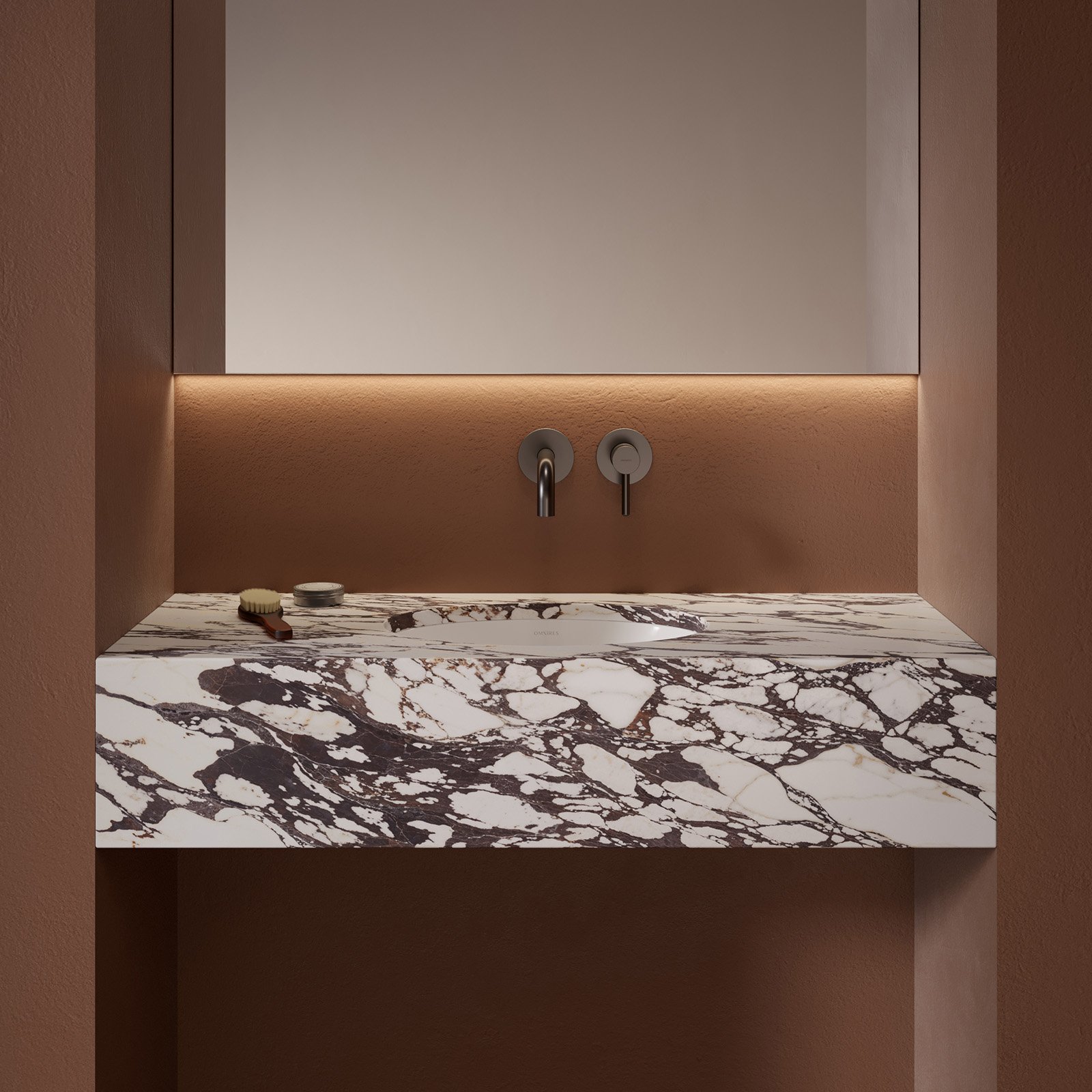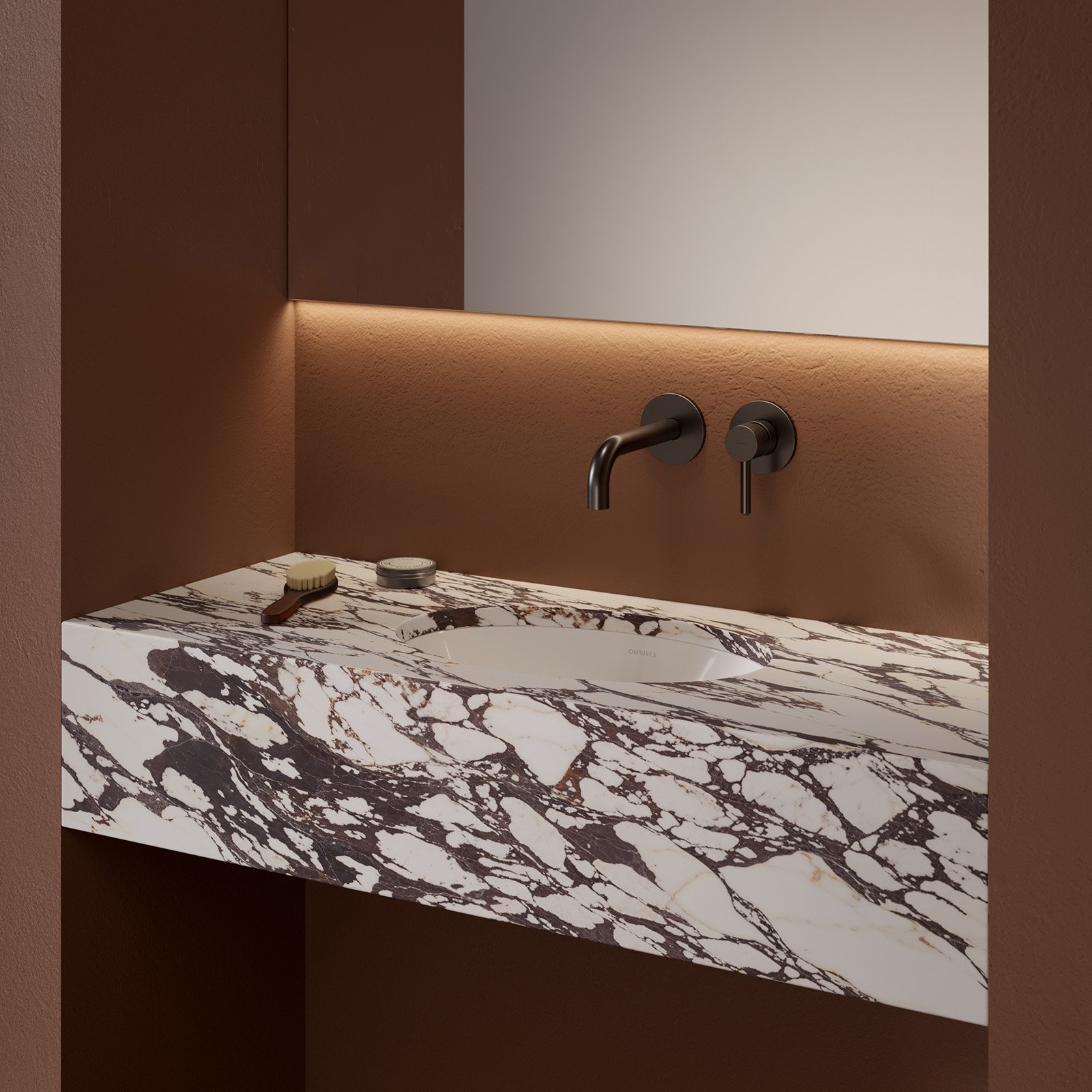 Umywalka została wykonana z materiału kompozytowego M+, którego głównym składnikiem jest skała dolomitowa. Innowacyjna technologia produkcji gwarantuje perfekcyjne wykonanie każdego detalu, jednocześnie zapewniając wyjątkową trwałość i odporność.