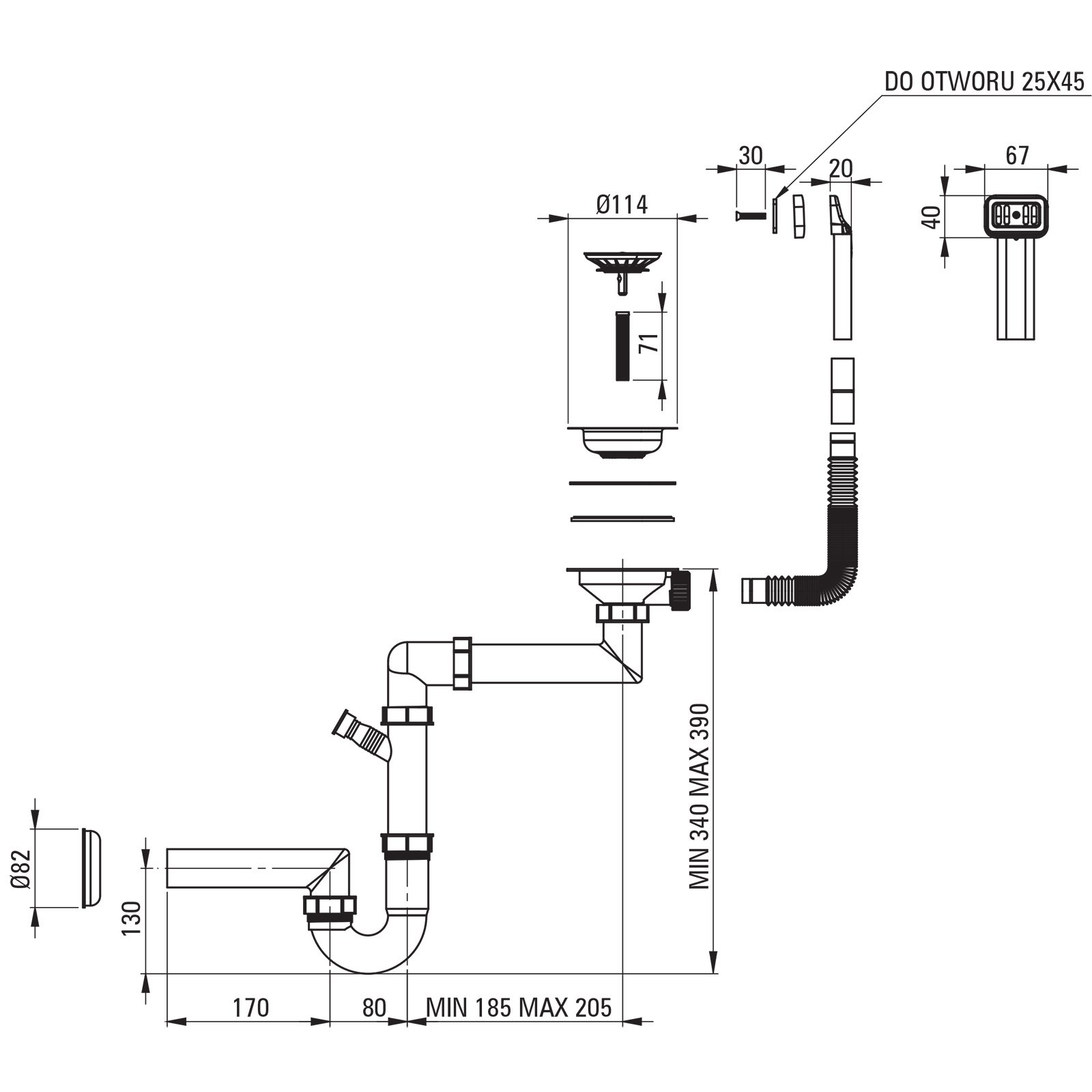 Syfon oszczędzający miejsce Space-saver ułatwiający m.in. segregację śmieci