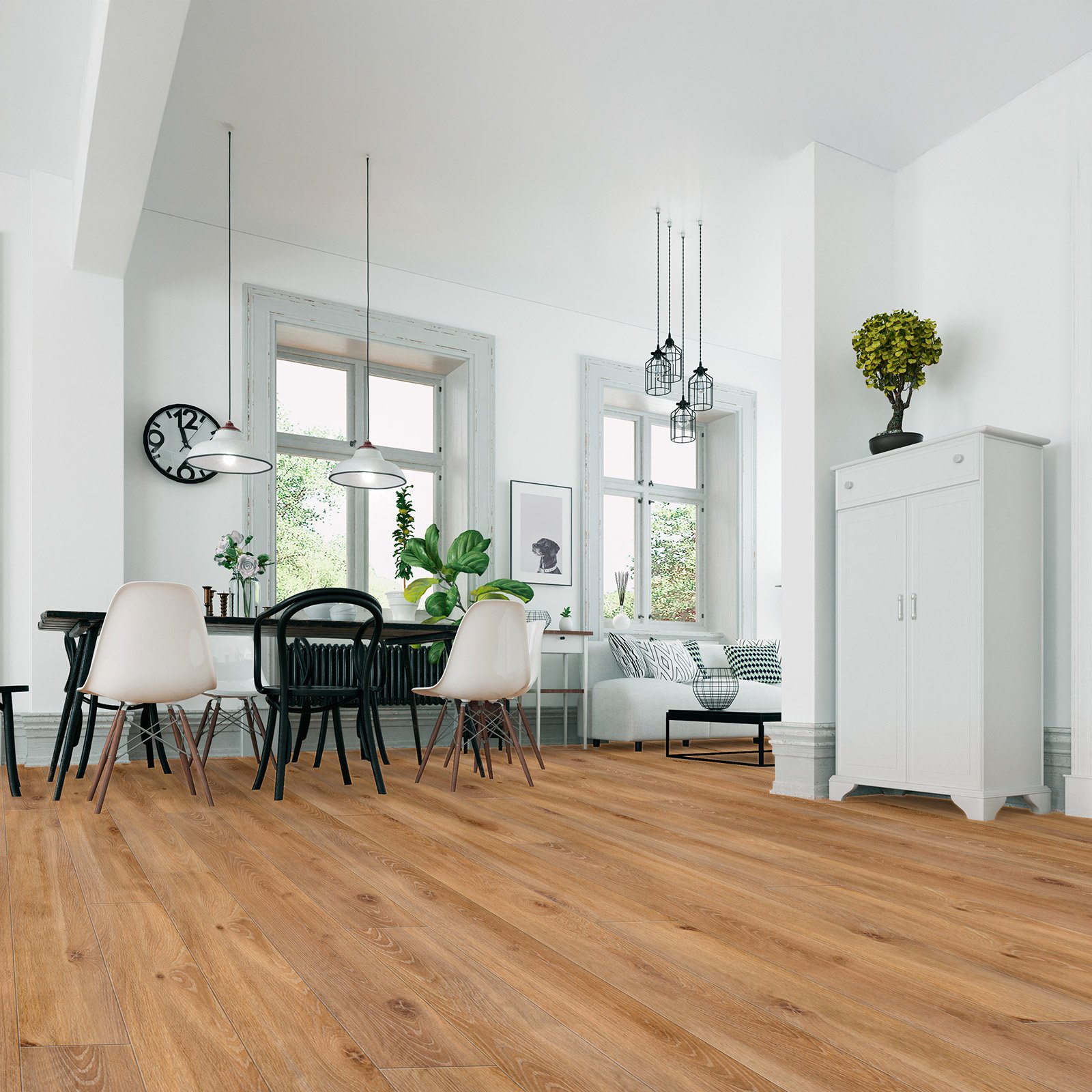 Panele laminowane marki Weninger to synonim trwałości, estetyki i nowoczesnych rozwiązań technologicznych w aranżacji wnętrz. Dzięki wyjątkowej dbałości o detale i wiernemu odwzorowaniu naturalnego drewna, podłogi tej marki doskonale komponują się zarówno z klasycznymi, jak i nowoczesnymi przestrzeniami, wnosząc do pomieszczeń ciepło oraz elegancję. Laminowana powierzchnia paneli charakteryzuje się wysoką odpornością na ścieranie i zarysowania, co sprawia, że są one idealnym wyborem do miejsc o średnim i wysokim natężeniu ruchu – zarówno w domach, jak i w lokalach użytkowych.