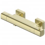 Bateria prysznicowa MALAGA termostatyczna ścienna jasna złota szczotkowana PVD.