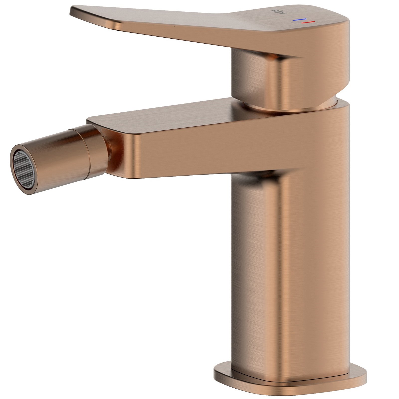 Bateria bidetowa MALAGA stojąca ze spustem klik-klak różowa złota szczotkowana PVD.