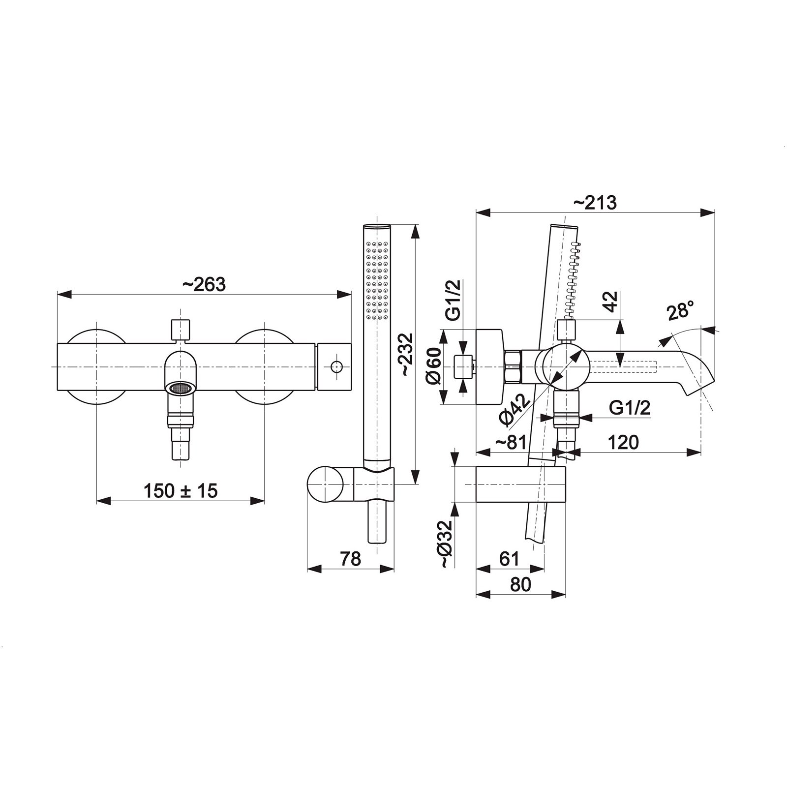 - Rozstaw przyłączy [mm]: 150 ± 15 mm
