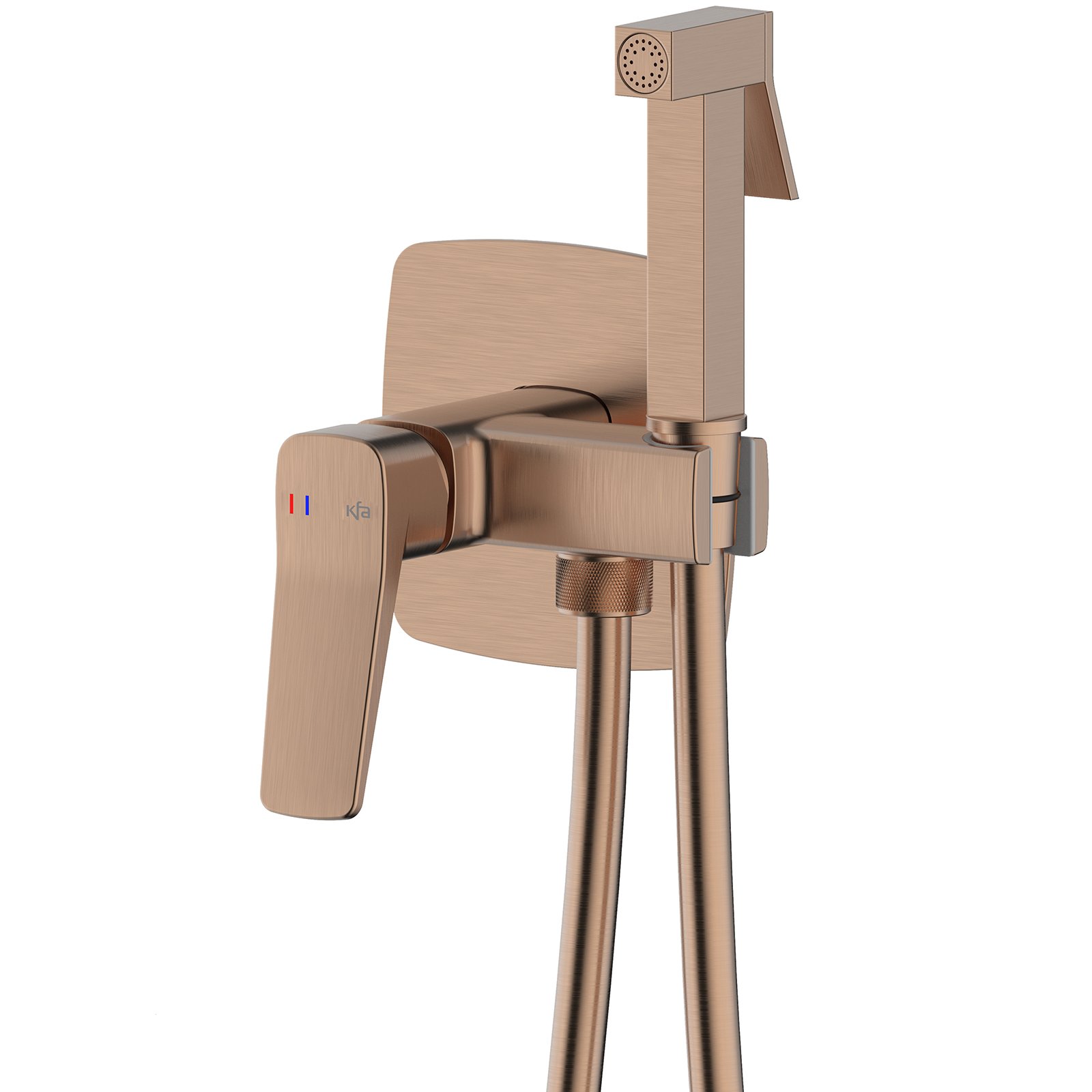 Bateria bidetowa MALAGA podtynkowa ścienna różowa złota szczotkowana PVD.