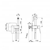 Bateria bidetowa MALAGA podtynkowa ścienna gun metal szara PVD.
