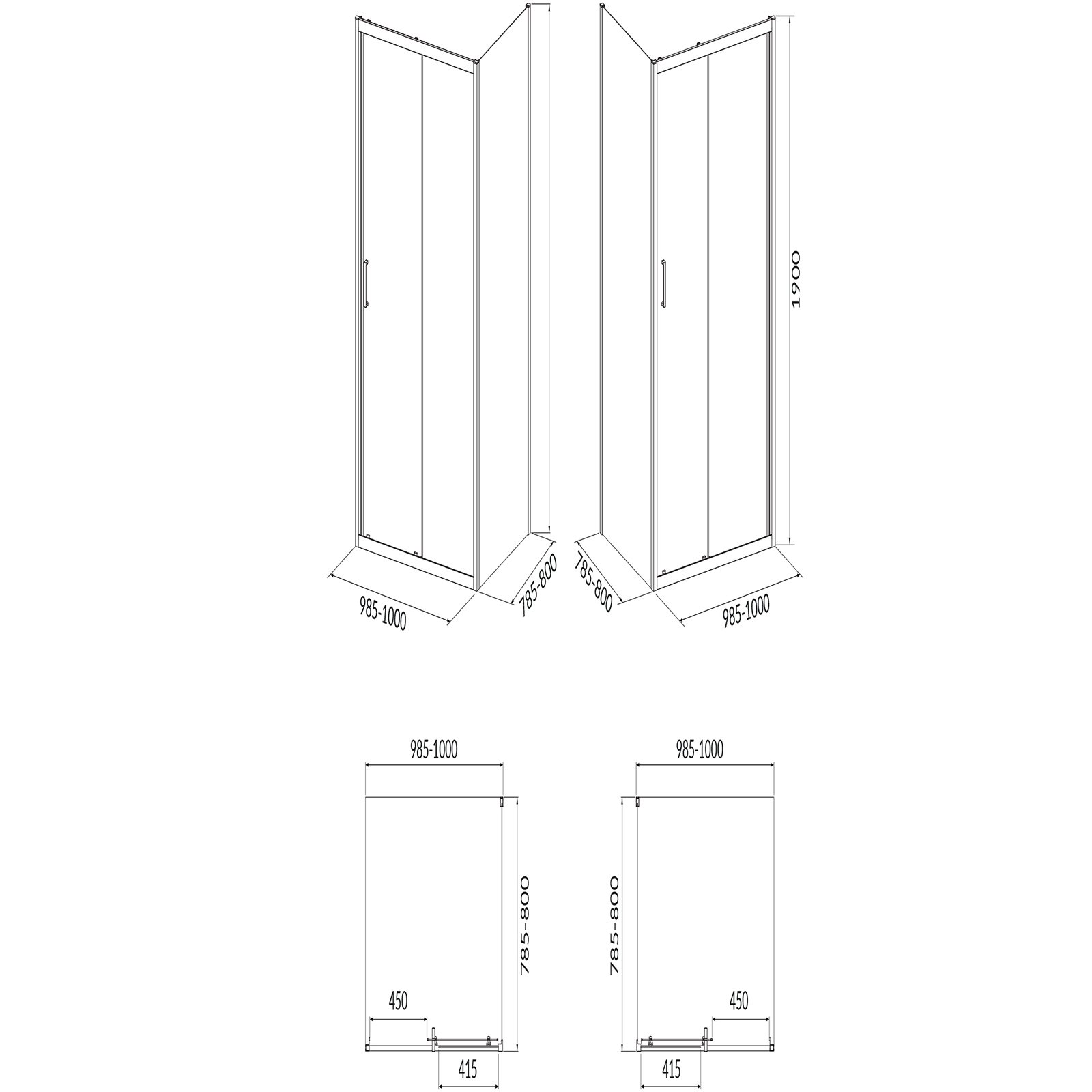 Kabina Verso prostokątna: model dostępny w dwóch wymiarach 80x80x190 cm oraz 90x90x190 cm. Posiada hartowane szkło o grubości 4/5 mm w kolorze przezroczystym. Drzwi otwierają się na podwójnych rolkach górnych i dolnych, które można łatwo wypinać do czyszczenia. Kabiny dostępne w dwóch kolorach - profil jest chromowany lub czarny, z możliwością regulacji do niwelowania nierówności ściany do 15 mm. Różni się od półokrągłej, prostokątnym kształtem oraz konstrukcją drzwi, które również działają na podwójnych rolkach.