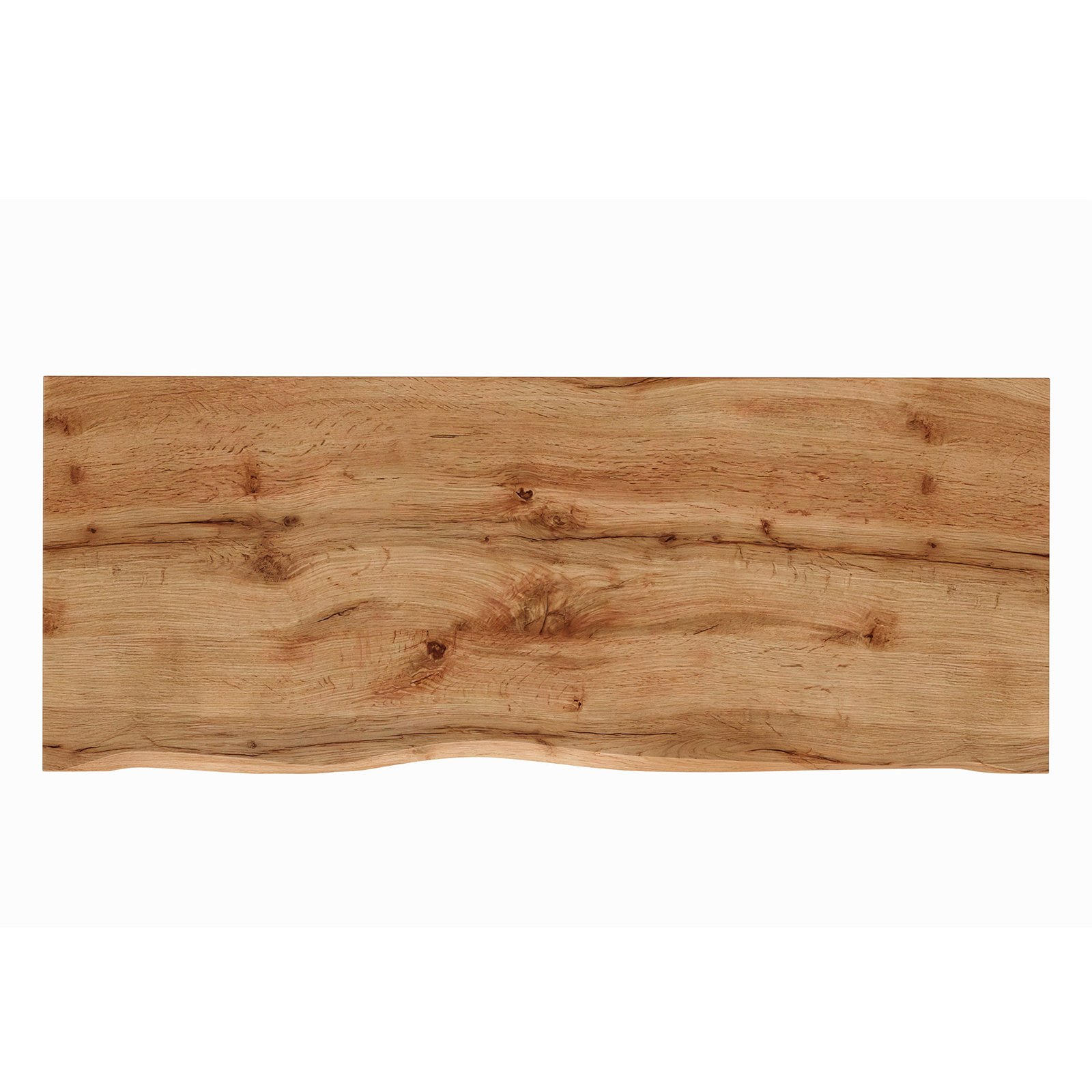 Blat 120 cm z kolekcji Nature to propozycja inspirowana prawdziwym drewnem – jego nieregularna, lekko falowana krawędź imituje naturalnie cięty kawałek drewna, nadając wnętrzu autentyczny i przytulny klimat. Wykończenie w dekorze Dąb Wotan z mocno zarysowanym usłojeniem i kontrastowymi tonami dodaje całości głębi i wyrazistości. Blat został zaprojektowany z myślą o szafkach pod umywalkę o głębokości 46 cm, z którymi tworzy spójne i funkcjonalne zestawienie, a wykonanie z płyty MDF i folii PVC zapewnia estetyczny wygląd na lata.