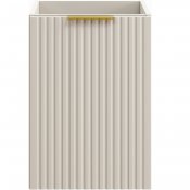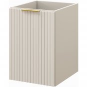 Szafka pod blat o szerokości 40 cm z koszem na pranie z kolekcji Adel Cashmere łączy elegancję z funkcjonalnością. Charakteryzuje się klasycznymi proporcjami brył i wyjątkowymi, ryflowanymi frontami. Uchwyty w trzech kolorach - złoty połysk, chrom połysk oraz czarny mat - nadają jej stylowy wygląd. Najpopularniejszy w tym sezonie kolor kaszmirowy nadaje szafce nowoczesny wygląd, który doskonale komponuje się z różnymi aranżacjami wnętrz.