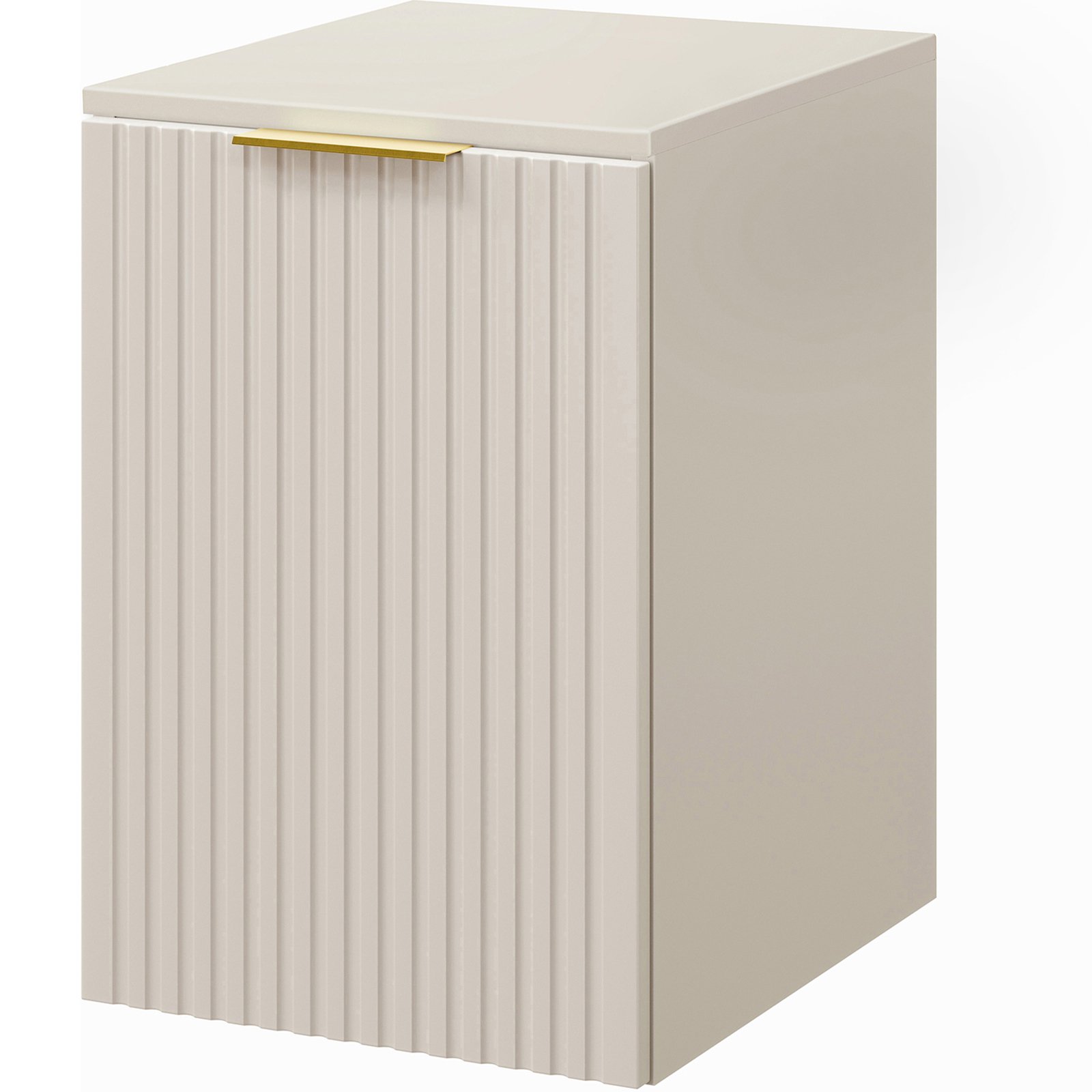 Fronty w wykończeniu Frezowane Ryfle Pionowe wprowadzają do wnętrza nutę klasyki, harmonizując z nowoczesnymi akcentami. W zestawie znajduje się szafka z koszem na pranie, co czyni go niezwykle praktycznym rozwiązaniem dla każdego, kto ceni sobie porządek oraz maksymalne wykorzystanie dostępnej przestrzeni. Dodatkowo, w zestawie znajduje się dostosowany blat, który uzupełnia całość, tworząc spójną aranżację.