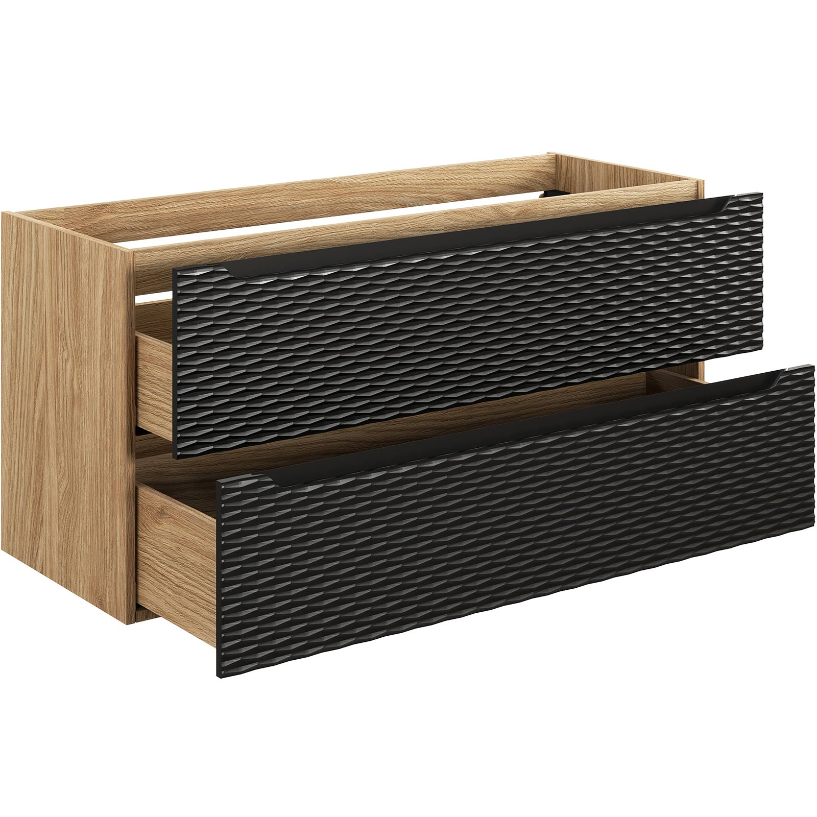Zanurz się w wyjątkowym połączeniu natury i nowoczesnego designu z naszą kolekcją mebli Ocean. Inspiracją do stworzenia tych wyjątkowych mebli była fascynacja oceanem - miejscem, gdzie siła prostoty spotyka się z nieprzewidywalnością form przyrody. Charakterystycznym elementem mebli Ocean są fronty, na których pojawiają się delikatne, poziome fale, które przybierają trójwymiarową formę, przypominając o nieustannej transformacji oceanicznego krajobrazu. Korpusy w kolorze dębu olejowanego dodają meblom naturalnej i trwałej struktury, podczas gdy czarne fronty przywołują myśli o nocnym niebie nad spokojnym oceanem, gdzie ciemne fale emanują tajemniczym blaskiem gwiazd, nadając wnętrzu spokoju i tworząc niepowtarzalną atmosferę. Przemyślaną cechą kolekcji Ocean jest zastosowanie podchwytów zamiast tradycyjnych rozwiązań, co nie tylko nadaje meblom nowoczesnego charakteru, ale także wprowadza jednolitość w designie. To unikalne połączenie funkcjonalności, estetyki i inspiracji przyrodą sprawia, że ta kolekcji jest idealnym wyborem dla tych, którzy pragną obudzić zmysły i stworzyć własne morze spokoju z kolekcją Ocean.