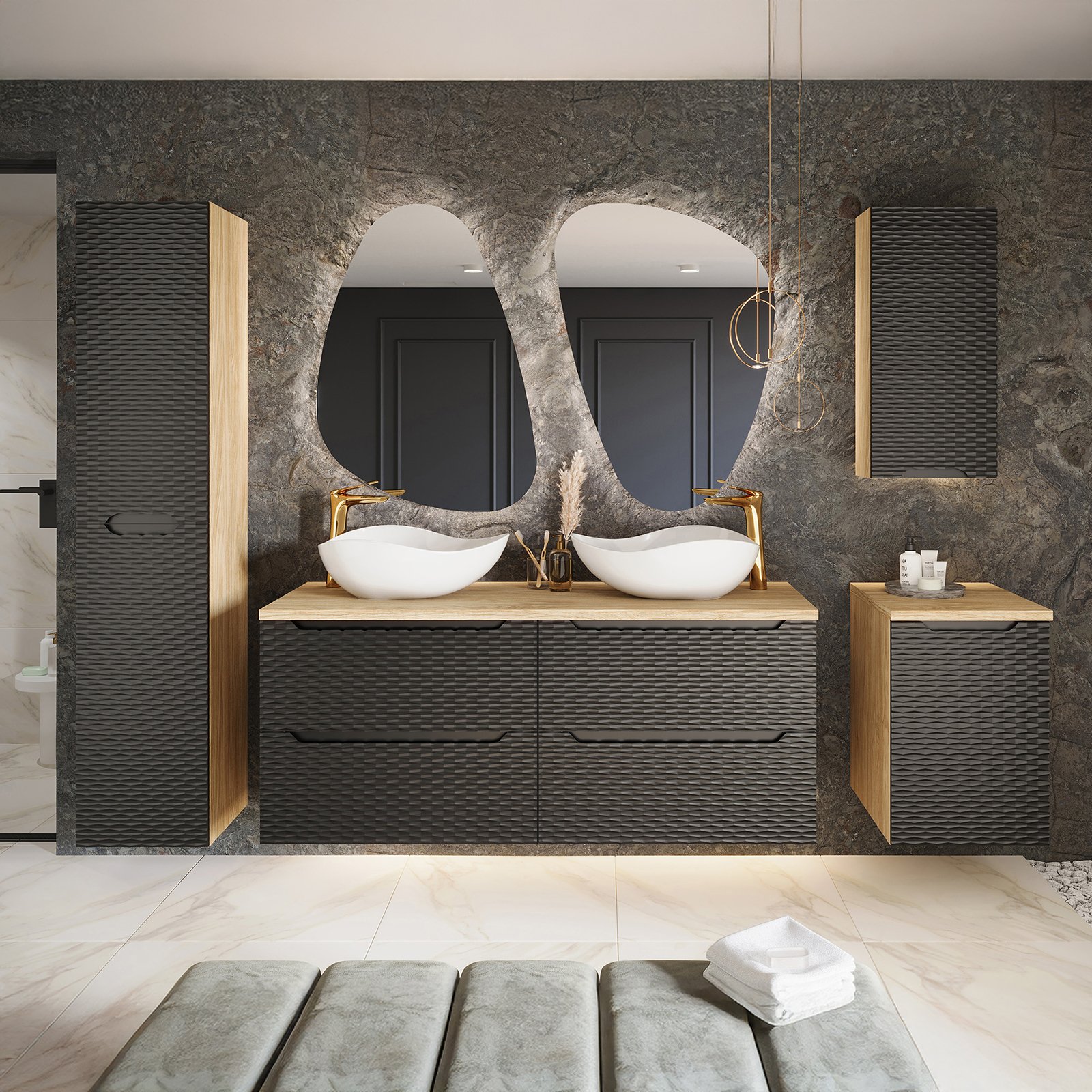 Zanurz się w wyjątkowym połączeniu natury i nowoczesnego designu z naszą kolekcją mebli Ocean. Inspiracją do stworzenia tych wyjątkowych mebli była fascynacja oceanem - miejscem, gdzie siła prostoty spotyka się z nieprzewidywalnością form przyrody. Charakterystycznym elementem mebli Ocean są fronty, na których pojawiają się delikatne, poziome fale, które przybierają trójwymiarową formę, przypominając o nieustannej transformacji oceanicznego krajobrazu. Korpusy w kolorze dębu olejowanego dodają meblom naturalnej i trwałej struktury, podczas gdy czarne fronty przywołują myśli o nocnym niebie nad spokojnym oceanem, gdzie ciemne fale emanują tajemniczym blaskiem gwiazd, nadając wnętrzu spokoju i tworząc niepowtarzalną atmosferę. Przemyślaną cechą kolekcji Ocean jest zastosowanie podchwytów zamiast tradycyjnych rozwiązań, co nie tylko nadaje meblom nowoczesnego charakteru, ale także wprowadza jednolitość w designie. To unikalne połączenie funkcjonalności, estetyki i inspiracji przyrodą sprawia, że ta kolekcji jest idealnym wyborem dla tych, którzy pragną obudzić zmysły i stworzyć własne morze spokoju z kolekcją Ocean.