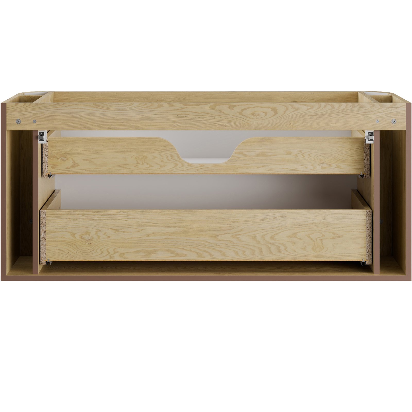 Dwie szuflady oferują dużą miejsca do przechowywania akcesoriów łazienkowych, utrzymując porządek. Meble zostały wykonane z płyty MDF i płyty laminowanej zapewniając estetyczny wygląd na lata. Komfort codziennego użytkowania podnosi system cichego domykania, który sprawia, że otwieranie i zamykanie frontów jest płynne i bezgłośne. Szafki pod umywalkę o głębokości 46 cm łączą funkcjonalność z unikalną formą, a dzięki dedykowanym, zaokrąglonym umywalkom Pure oraz dopasowanym blatom tworzą kompletne, gotowe rozwiązanie.