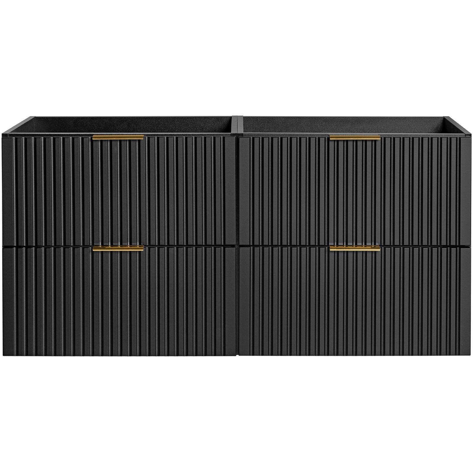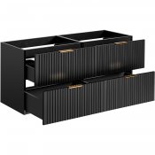 Szafka pod umywalkę 60 cm z dwoma szufladami z kolekcji Adel Black łączy elegancję z funkcjonalnością. Charakteryzuje się klasycznymi proporcjami brył i wyjątkowymi, ryflowanymi frontami. Uchwyty w trzech kolorach - złoty połysk, chrom połysk oraz czarny mat - nadają jej stylowy wygląd.