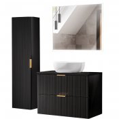 Zestaw mebli ADEL BLACK szafka z blatem 80 cm, umywalka SMILE, słupek, lustro 80