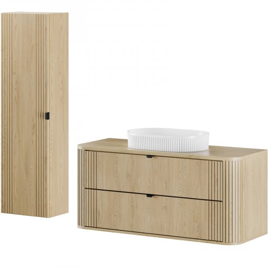Zestaw mebli OVALIA CREMONA szafka z blatem 120 cm, umywalka BEYOND, słupek 40 cm