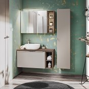 Zestaw meblowy SET-SFT B 80CM UN 6252 A2 to kompleksowe rozwiązanie do Twojej łazienki, które składa się min. z szafki pod umywalkę, blatu, umywalki nablatowej Smile, szafki wysokiej oraz szafki z lustrem. Ten zestaw z kolekcji Santa Fe Taupe zachwyci Cię swoją elegancją i praktycznością.