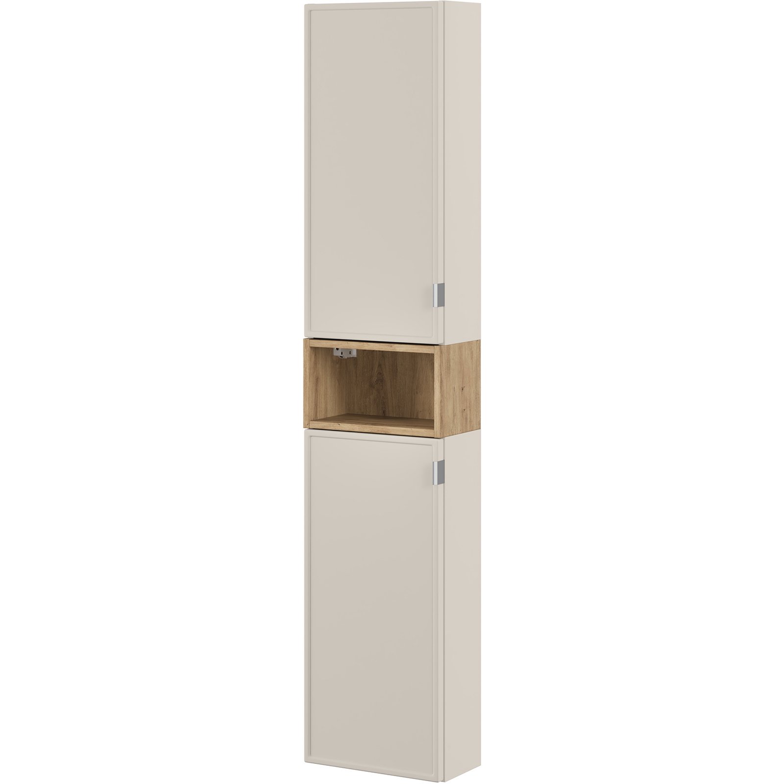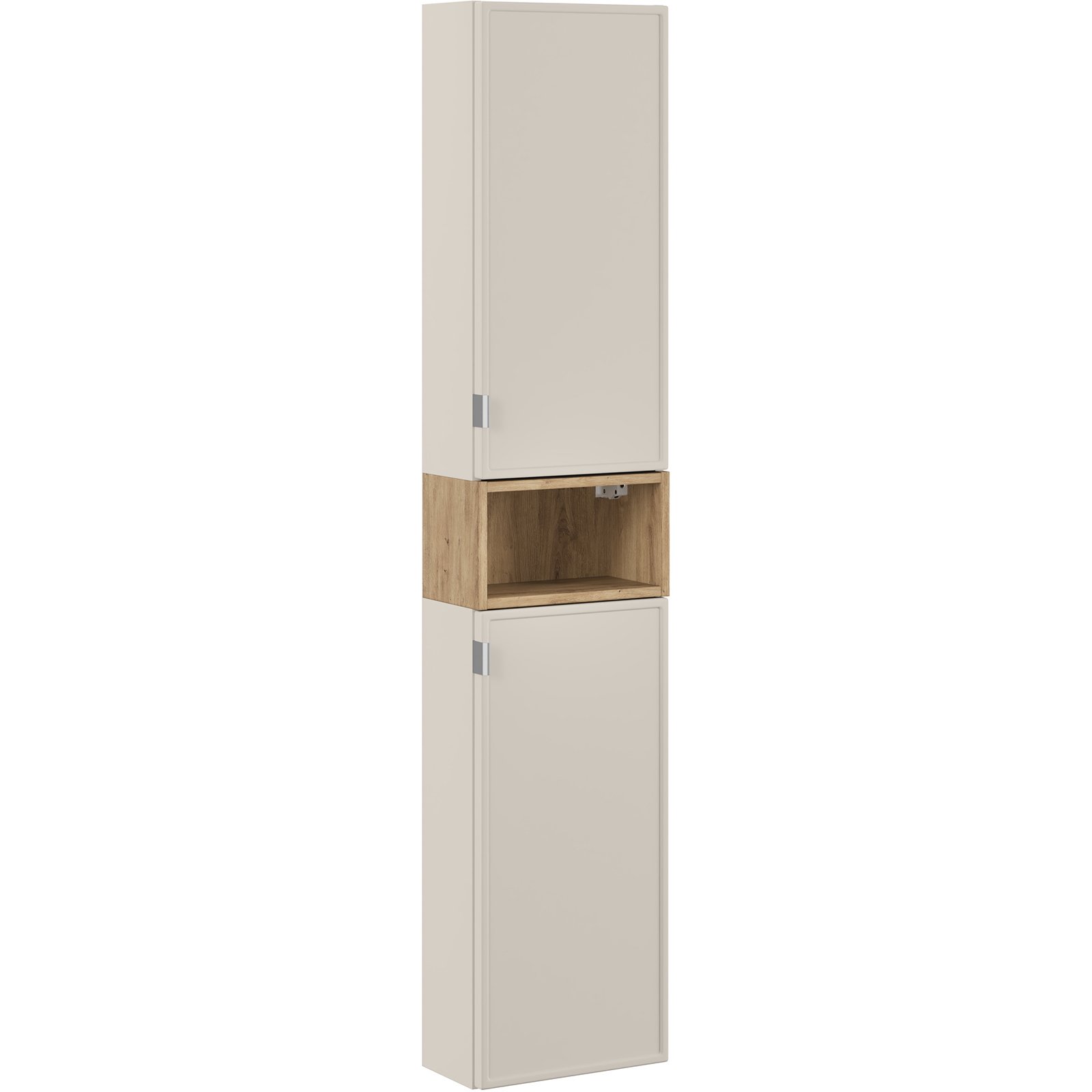 Regał otwarty doskonale wpisuje się w nowoczesne i klasyczne aranżacje łazienkowe. Wykończony w dekorze Dębu Artisan, który wprowadza do wnętrza ciepło i naturalny, rustykalny akcent. Konstrukcja z trwałej płyty laminowanej zapewnia solidność i długotrwałe użytkowanie. Dzięki pełnej kompatybilności z kolekcją Bella Cashmere, wypełnia przestrzeń dodając jej wyrazistego charakteru i wyjątkowego stylu.