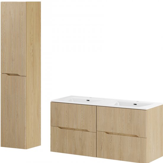 Zestaw mebli NORDIC CREMONA szafka 2x60 cm, umywalka SKY 120 cm, słupek 35 cm
