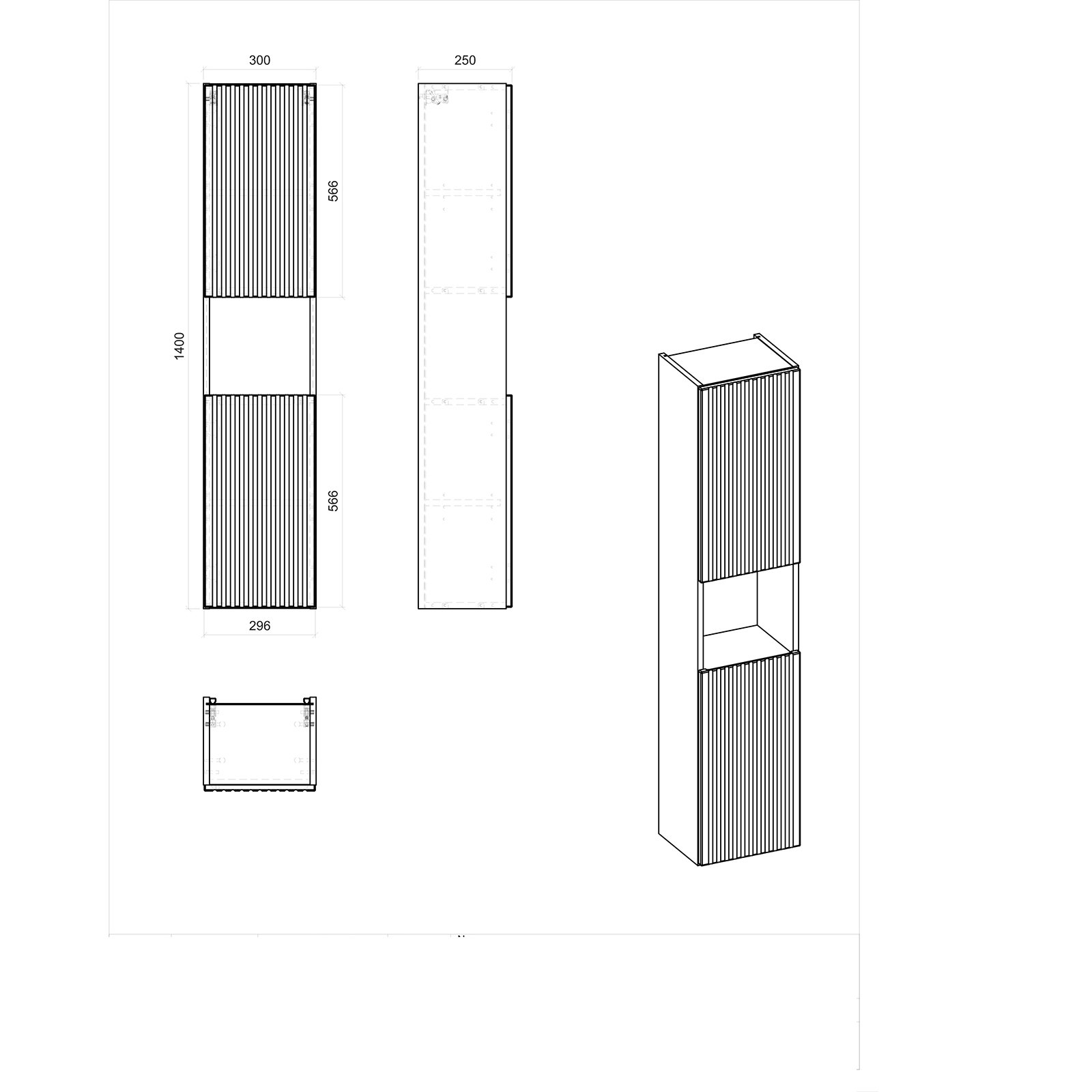 Fronty mebli charakteryzują się subtelnie frezowanymi ryflami pionowymi, które dodają meblom indywidualnego charakteru. Uchwyty w kolorze kaszmiru doskonale komponują się z całością. Każda składowa zestawu została starannie dopasowana do siebie, tworząc spójną i harmonijną całość.