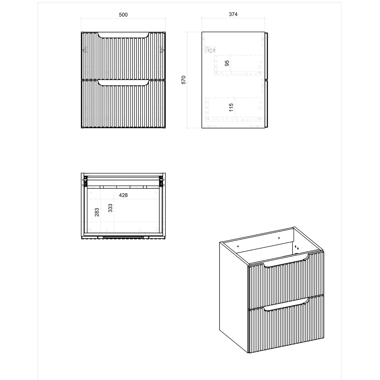 - 1x NOVA CASHMERE 82-60-2S Szafka pod umywalkę z dwiema szufladami 50 cm 1 NOVA OAK A 89-50 Blat 50 cm