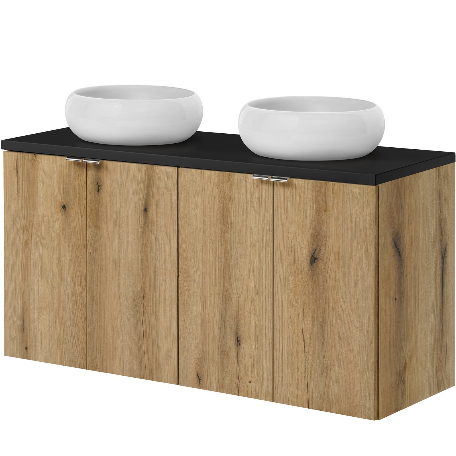 Zestaw mebli NOVA OAK 2 szafki z blatem BLACK 120 cm, 2 umywalki WIKI