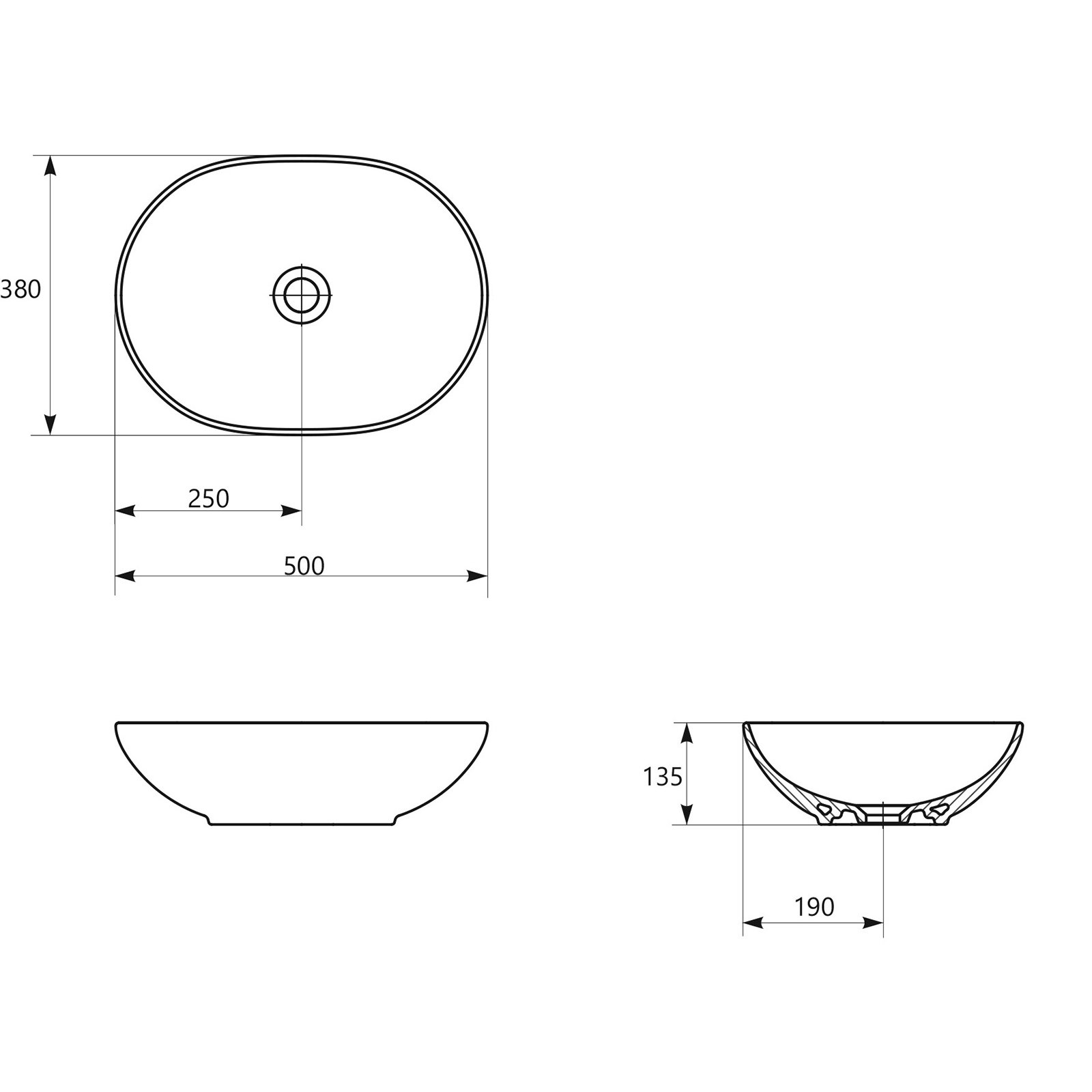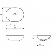 Umywalka 50, nablatowa, owalna, ceramiczna. Prezentuje się bardzo nowocześnie i elegancko. Umywalka doskonale odnajdzie się zarówno w mniejszych pomieszczeniach, jak i w większych przestronnych łazienkach. Umywalki dostępne są również w okrągłym i nieregularnym kształcie. Wysoka jakość ceramiki daje komfort użytkowania przez wiele lat. To idealny produkt dla osób ceniących sobie funkcjonalne i modne rozwiązania. Umywalka bez przelewu i otworu na armaturę.