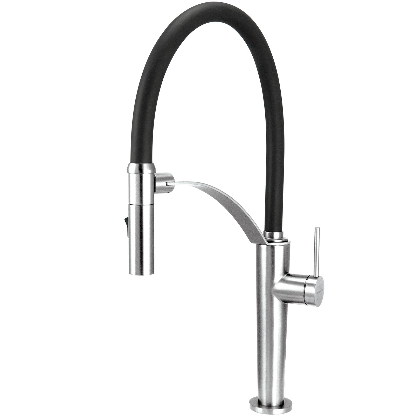 Bateria kuchenna Corda w wykończeniu chrom zachwyca nowoczesnym designem i funkcjonalnością. Dzięki elastycznej wylewce, która jest odkładana na magnes, prace kuchenne stają się znacznie prostsze. Elastyczna wylewka umożliwia swobodne mycie dużych garnków i napełnianie wodą wysokich naczyń. Dwufunkcyjna słuchawka umożliwia zmianę strumienia napowietrzonego na deszczowy, idealny do płukania owoców i warzyw. Chromowane wykończenie dodaje elegancji, blasku i doskonale komponuje się z nowoczesnym i klasycznym wystrojem kuchni. Design baterii doskonale komponuje się z serią granitowych zlewozmywaków Corda, tworząc spójną i efektowną całość.