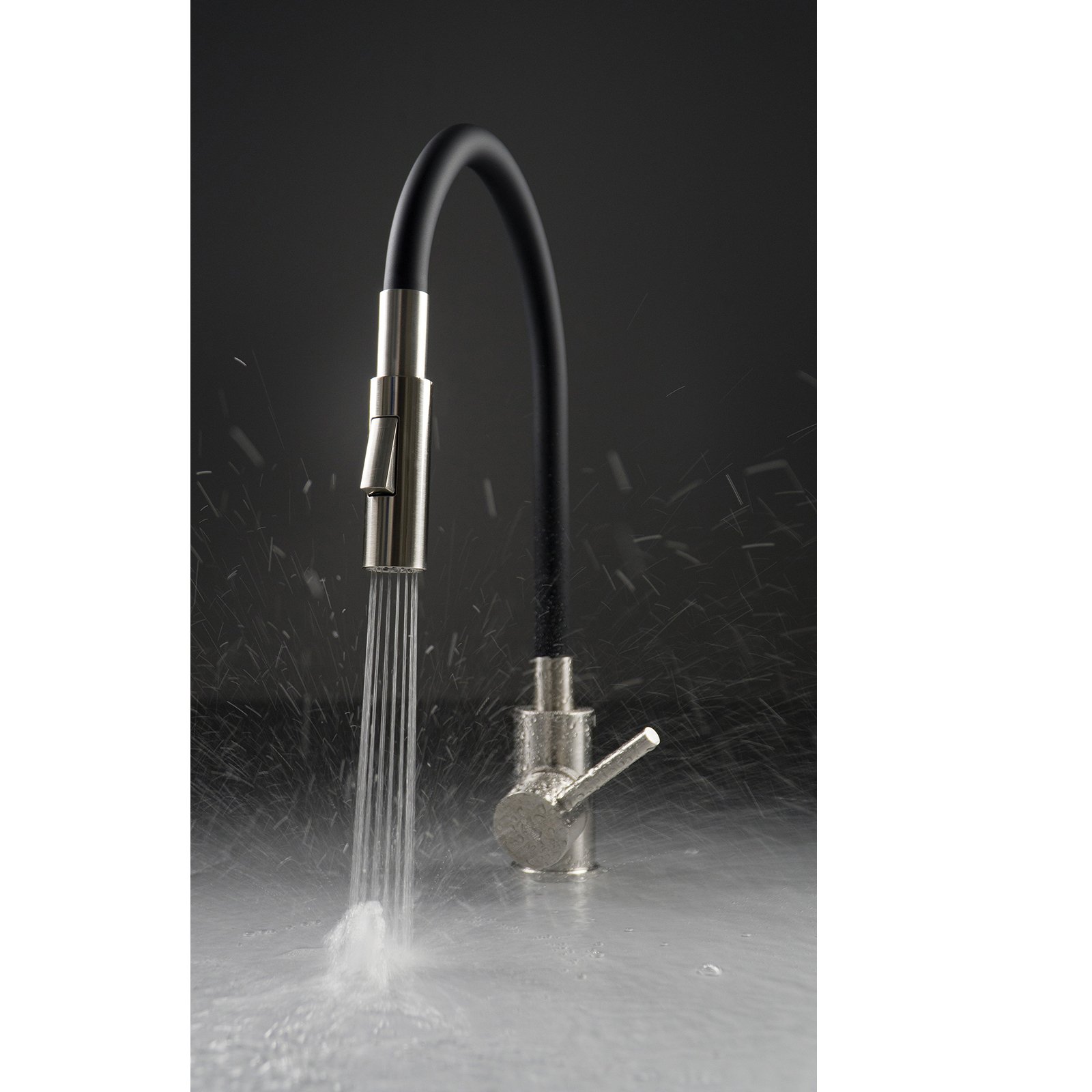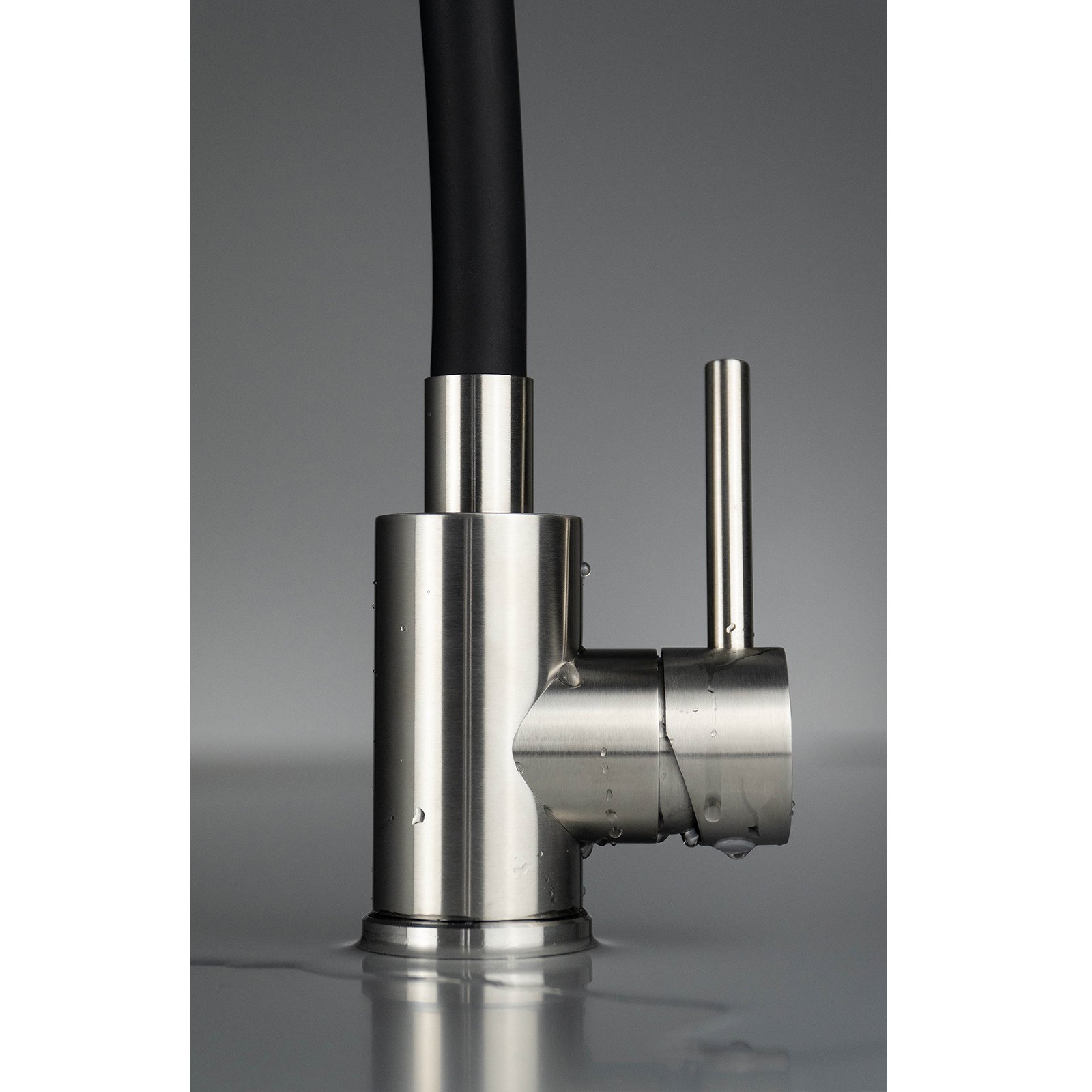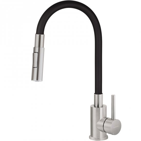 Bateria kuchenna stojąca LUNO z giętą wylewką stal szczotkowana/nero