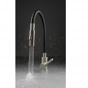 Bateria LUNO wyróżnia się elastyczną wylewką i 2-funkcyjną słuchawką. Jej elastyczna wylewka zapewnia łatwość regulacji wysokości strumienia wody, co znacząco ułatwia napełnianie nawet wysokich pojemników. Słuchawka posiada 2 rodzaje strumienia: napowietrzony i deszczowy. Ten drugi, idealnie nadaje się do opłukiwania warzyw, owoców, jak również komory zlewozmywaka.