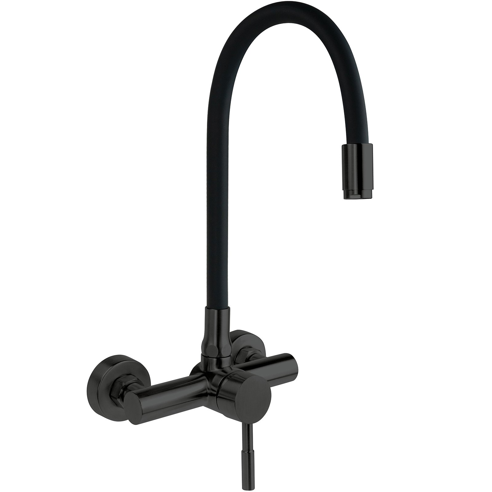 Bateria kuchenna ścienna LUNO z giętą wylewką nero