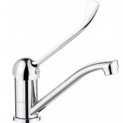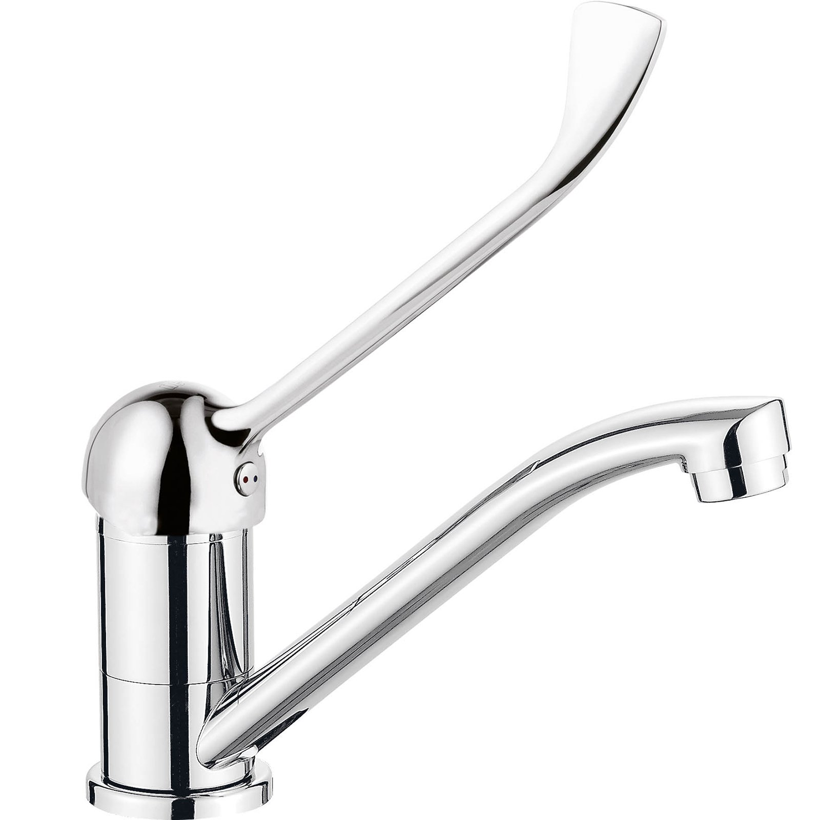 Baterie z dźwignią Clinic są przykładem komfortowej i jednocześnie maksymalnie bezpiecznej obsługi. Strumień wody można włączyć dłonią, przedramieniem albo łokciem. Rozwiązanie to zaprojektowane zostało z myślą o miejscach, w których ważny jest wysoki poziom higieny. To częsty wybór w klinikach, salonach urody czy punktach gastronomicznych.