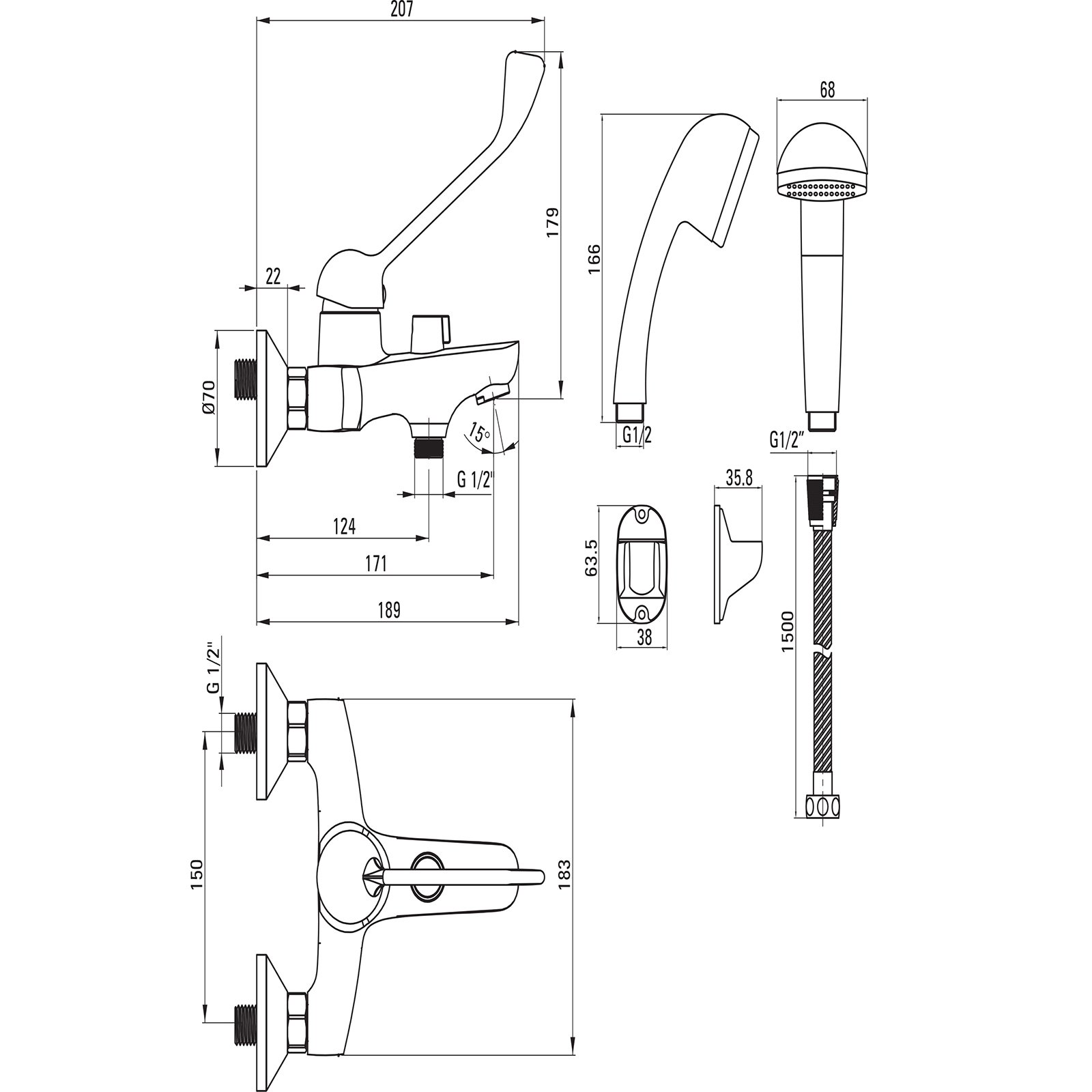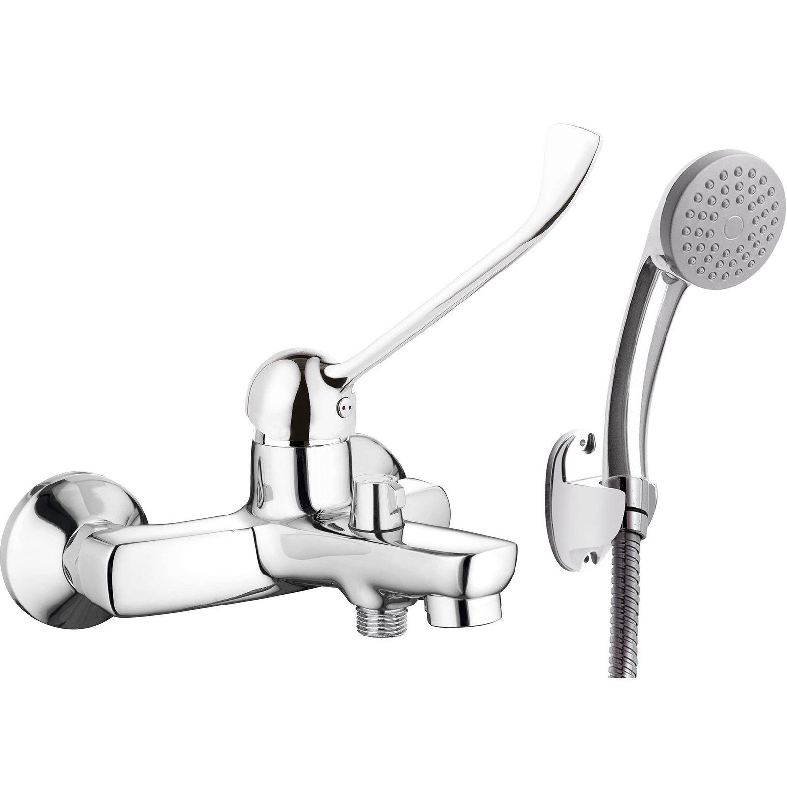 Bateria wannowa ścienna BORO z zestawem prysznicowym z dźwignią Clinic chrom