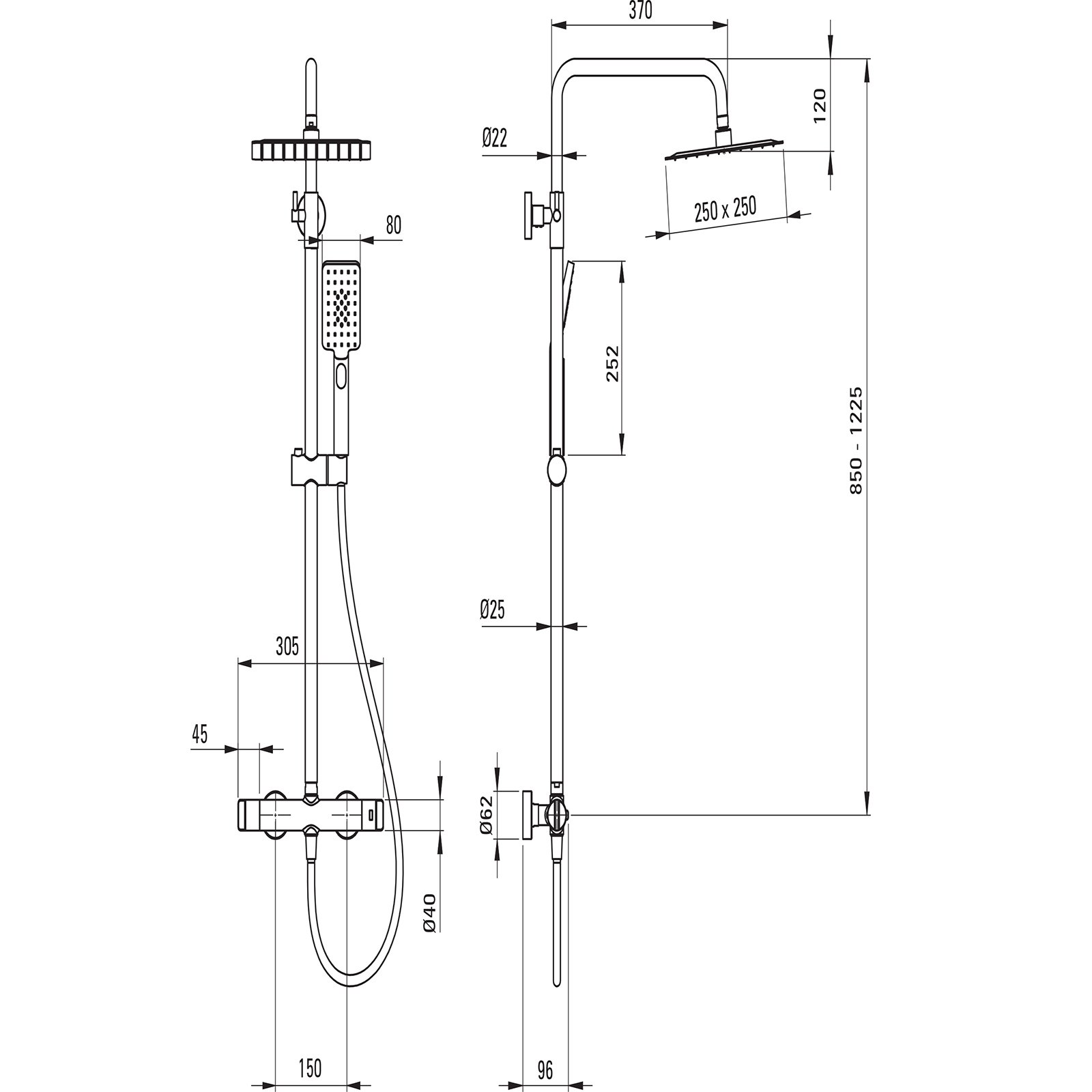 - regulowana wysokość górnej deszczowni: tak