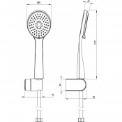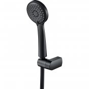Zestaw natryskowy składa się ze słuchawki, uchwytu punktowego i węża. Słuchawka posiada 3 rodzaje strumienia: deszczowy, hydromasaż i mieszany. Wyposażona jest w system anti-calc, który ułatwia usuwanie osadu kamiennego. Uchwyt posiada regulację kąta nachylenia słuchawki, dzięki czemu dostosujesz go swoich potrzeb. Cały zestaw wykończony jest w eleganckim czarnym macie.