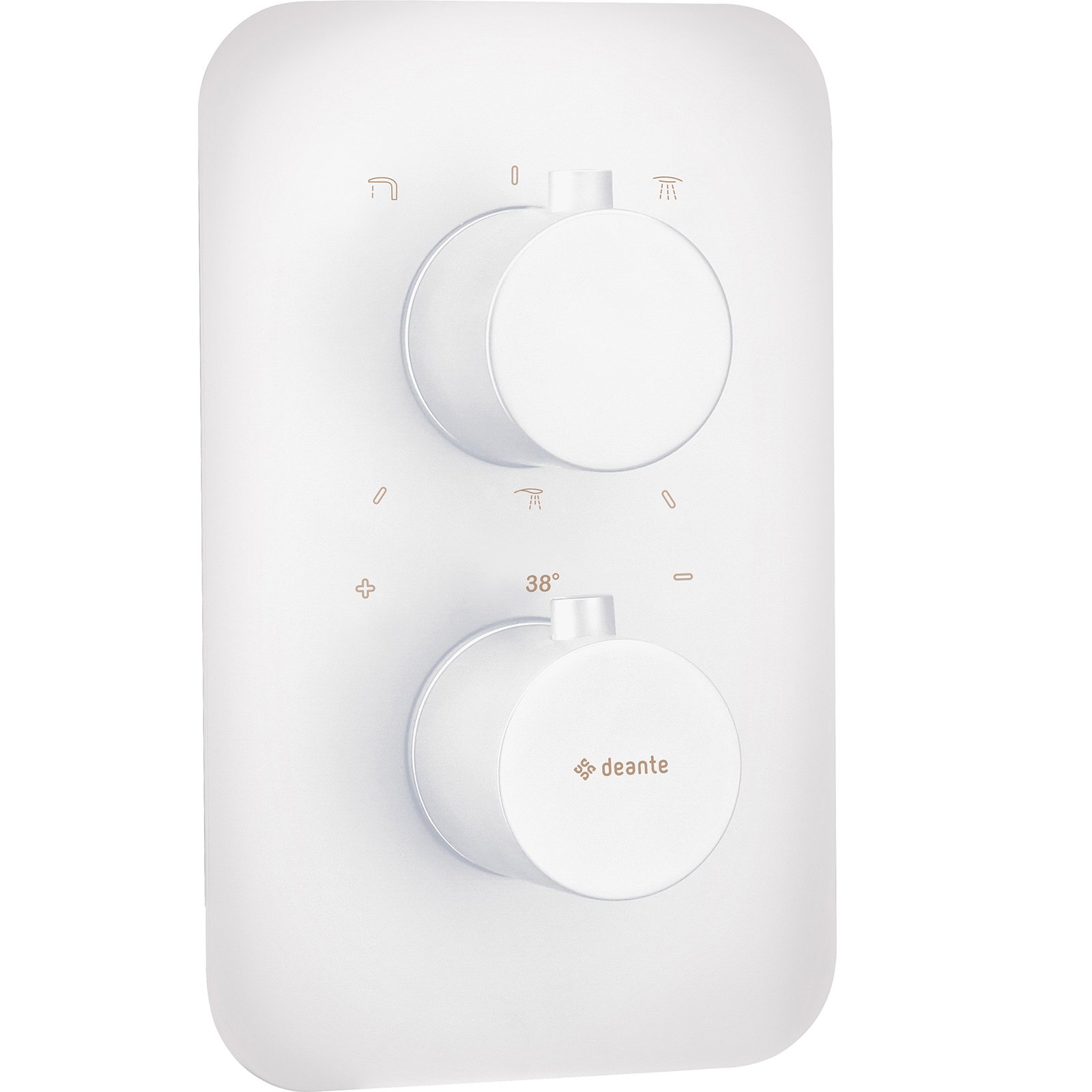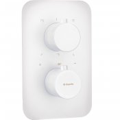 Element zewnętrzny do BOX-a termostatycznego w eleganckim, białym, matowym wykończeniu, jest esencją estetyki i prostoty typowej dla instalacji podtynkowych w łazienkach. Kluczem do elegancji podtynkowych instalacji jest ukrywanie mniej estetycznych części armatury, takich jak rury czy złączki. Na pierwszy plan wysuwają się jedynie designerskie elementy baterii, które dodają wnętrzu minimalistycznego, eleganckiego wyglądu. Box termostatyczny sprzedawany jest oddzielnie.