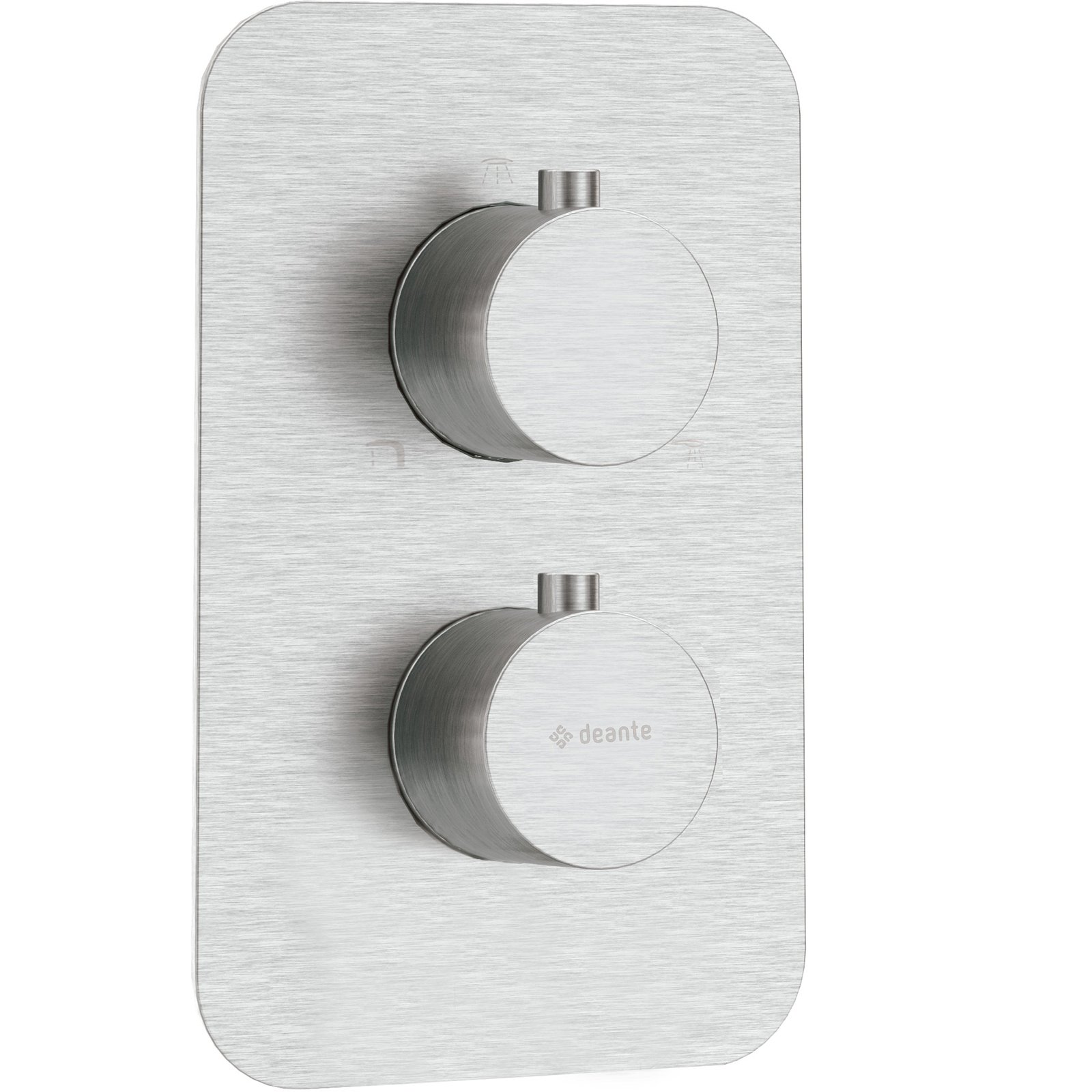 Zewnętrzny komponent do BOX-a termostatycznego wyróżnia się eleganckim, matowym wykończeniem w kolorze stali szczotkowanej. To kwintesencja klasy i prostoty, które są charakterystyczne dla podtynkowych rozwiązań w łazienkach. Kluczem do elegancji podtynkowych instalacji jest ukrywanie mniej estetycznych części armatury, takich jak rury czy złączki. Widoczne są jedynie designerskie fragmenty baterii, co nadaje wnętrzu minimalistyczny i stylowy charakter, jednocześnie redukując liczbę elementów wymagających regularnego czyszczenia. Box termostatyczny sprzedawany jest oddzielnie.