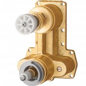Korpus BOX-a podtynkowego termostatycznego, umożliwiający użytkownikowi zamianę BOX-a podtynkowego mieszaczowego na termostatyczny, składa się z mosiężnego korpusu mocowanego w pierwszej fazie instalacji podtynkowej. Korpus wyposażony został w baterię termostatyczną z blokadą temperatury 38°C i 3-funkcyjny przełącznik natrysku. Największą zaletą instalacji podtynkowych jest z całą pewnością piękny wygląd łazienki, w której ukryte są nieatrakcyjne części armatury takie jak rury, kolanka i złączki. Na widoku pozostają jedynie designerskie elementy baterii. Taki minimalistyczny efekt jest stylowy, przyjemny dla oka i oznacza mniejszą ilość elementów do czyszczenia. Box termostatyczny sprzedawany jest oddzielnie.