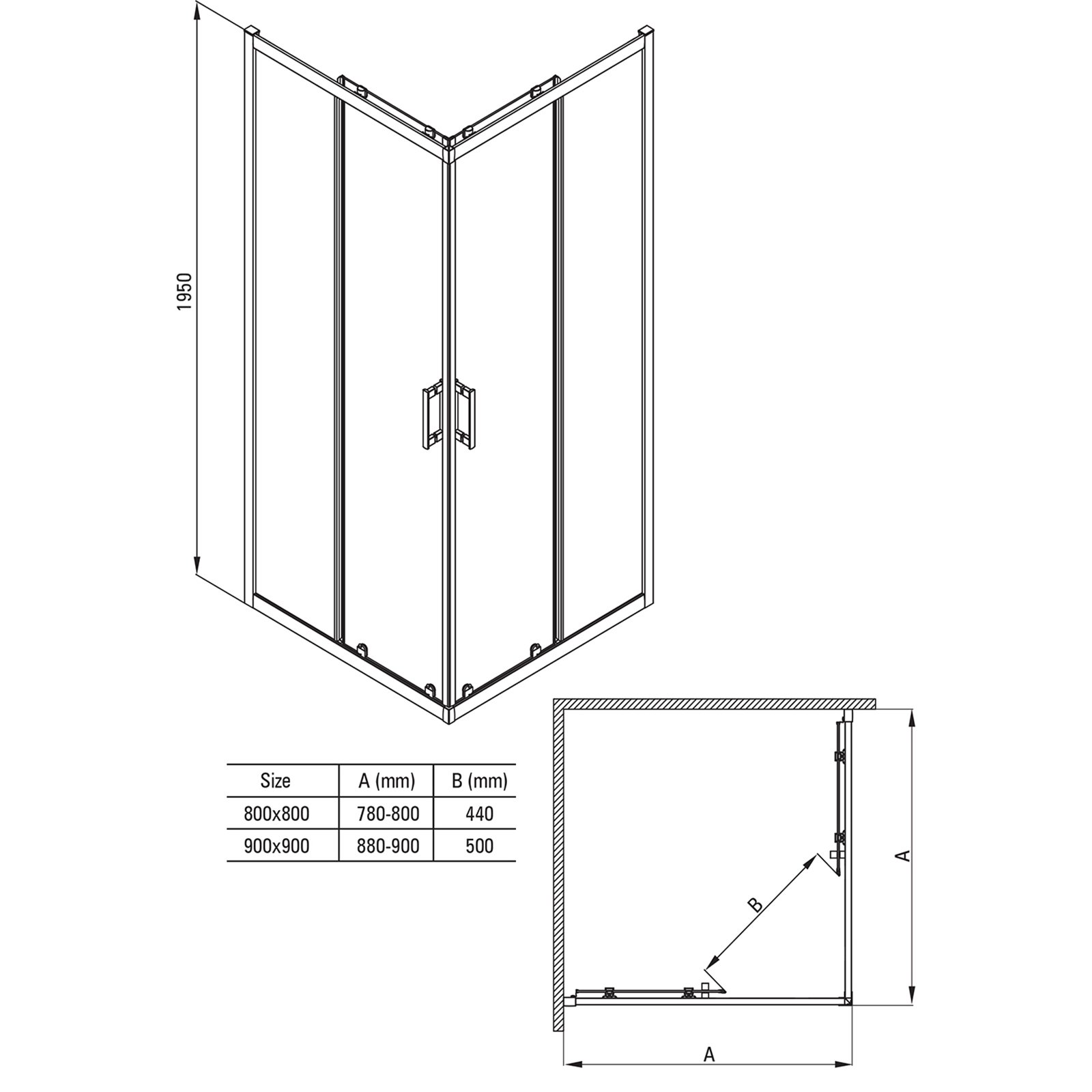 DEANTE Kabina prysznicowa kwadratowa FUNKIA nero szkło transparentne 90x90x195 cm KYC_N099P