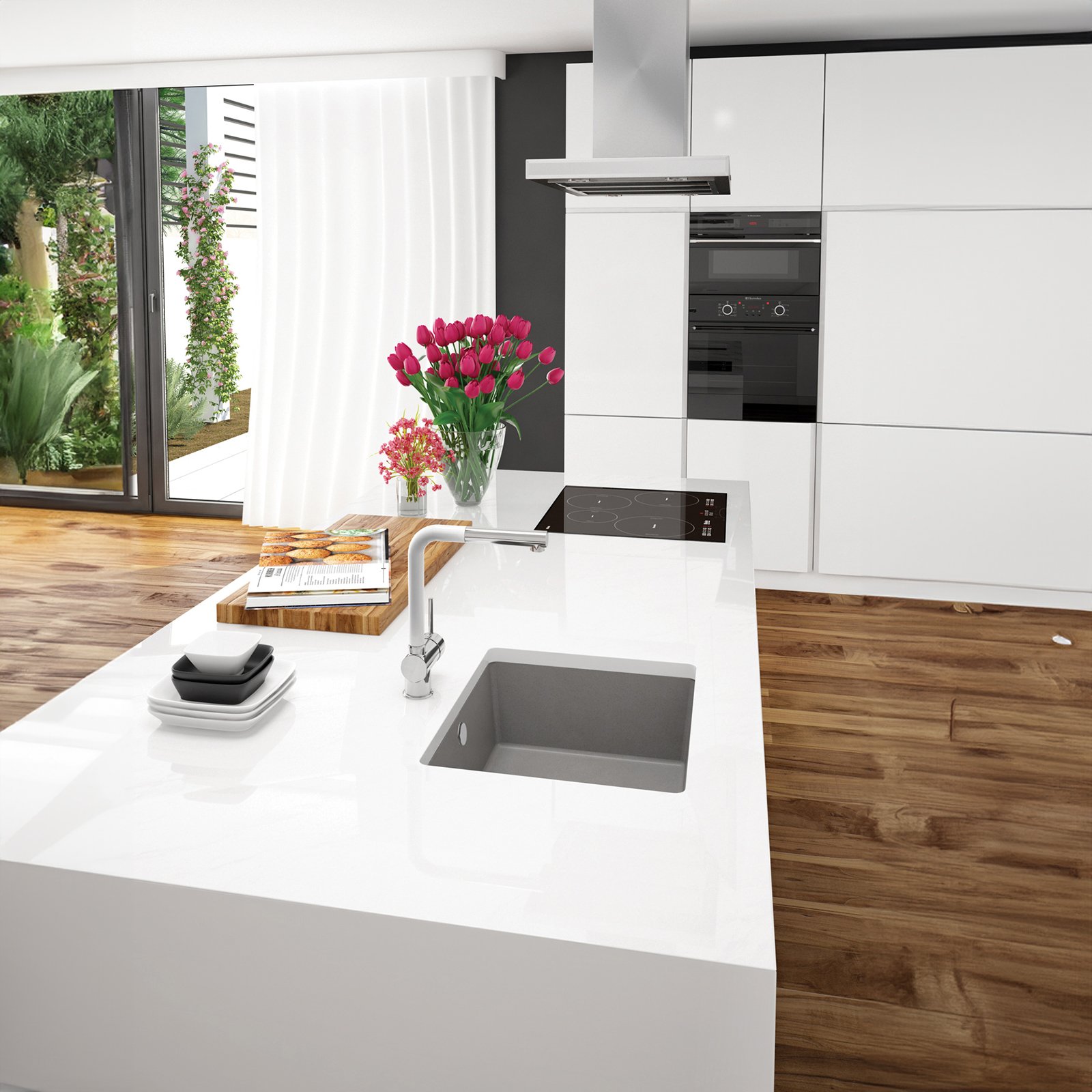 Kompozyt granitowy to połączenie piasku kwarcowego oraz żywic w odmierzonych ściśle proporcjach, dlatego zlewozmywaki są odporne nie tylko na uderzenia, ale także wysoką temperaturę (250°C), punktową zmianę koloru i szok termiczny. Nie przyjmują zapachów, a dzięki właściwościom hydrofobowym odpychają cząsteczki wody. Zlewozmywaki granitowe marki Deante są produkowane w Polsce, w jednej z najnowocześniejszych fabryk w Europie.