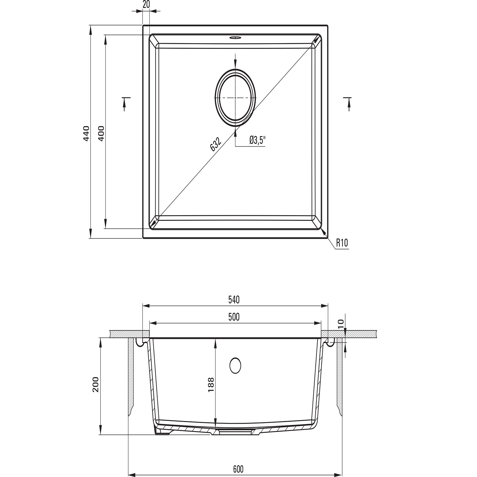 - średnica odpływu: 3.5”