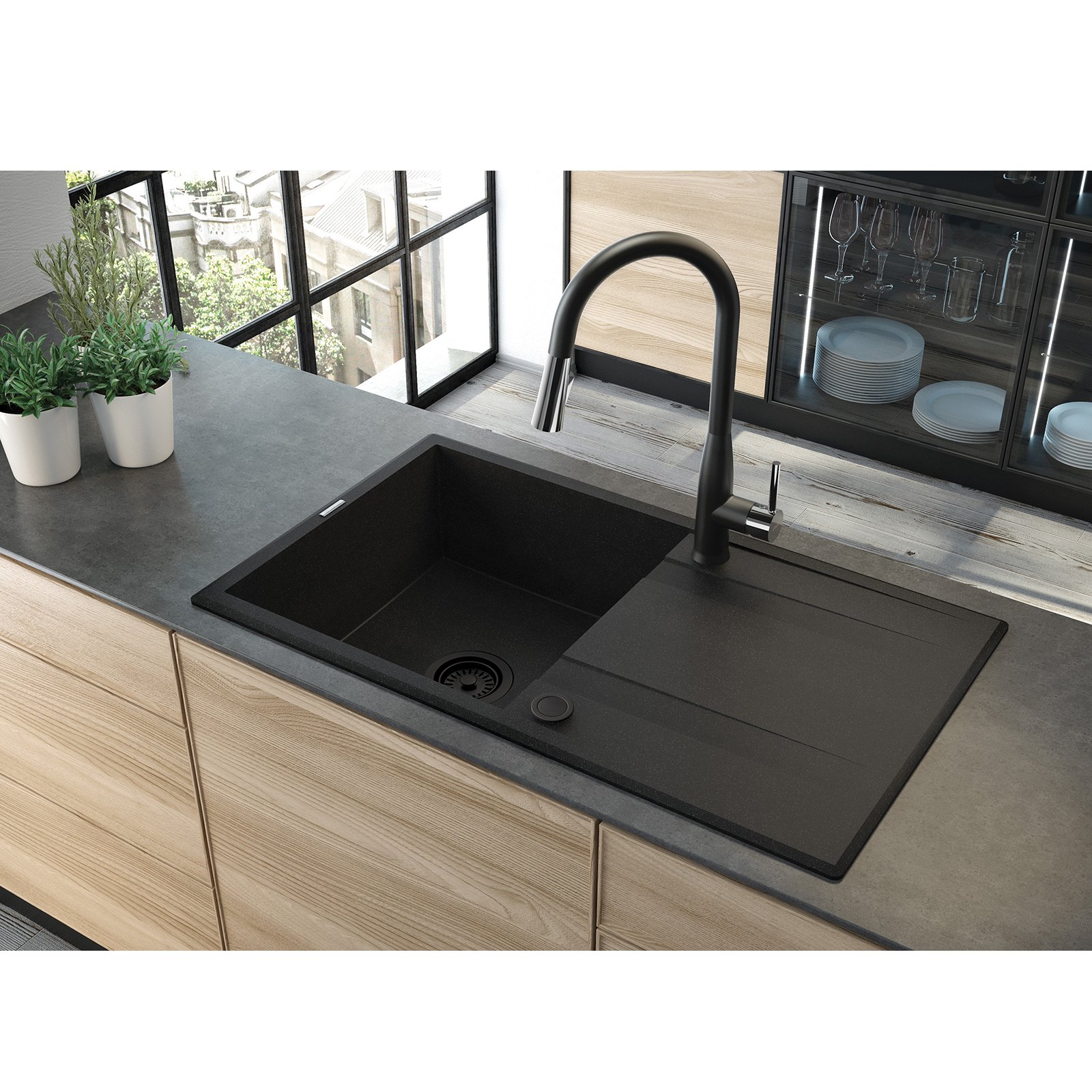 Zlewozmywak granitowy ERIDAN grafit metalik 1-komorowy z ociekaczem