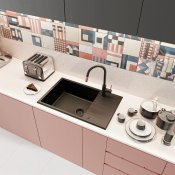 Zlewozmywak 1-komorowy Eridan z jedną przestronną komorą i ociekaczem to produkt, który zachwyca funkcjonalnością, wytrzymałością i designem. Zaprojektowany z myślą o maksymalnym wykorzystaniu przestrzeni, pomieści więcej niż standardowe zlewy o tych samych gabarytach zewnętrznych. Elegancka czerń świetnie sprawdzi się w kuchniach o stylistyce minimalistycznej, industrialnej i skandynawskiej jak i w tych klasycznych, współgrając z ciemnymi blatami lub kontrastując z jasnym kamieniem, kompozytem lub drewnem.