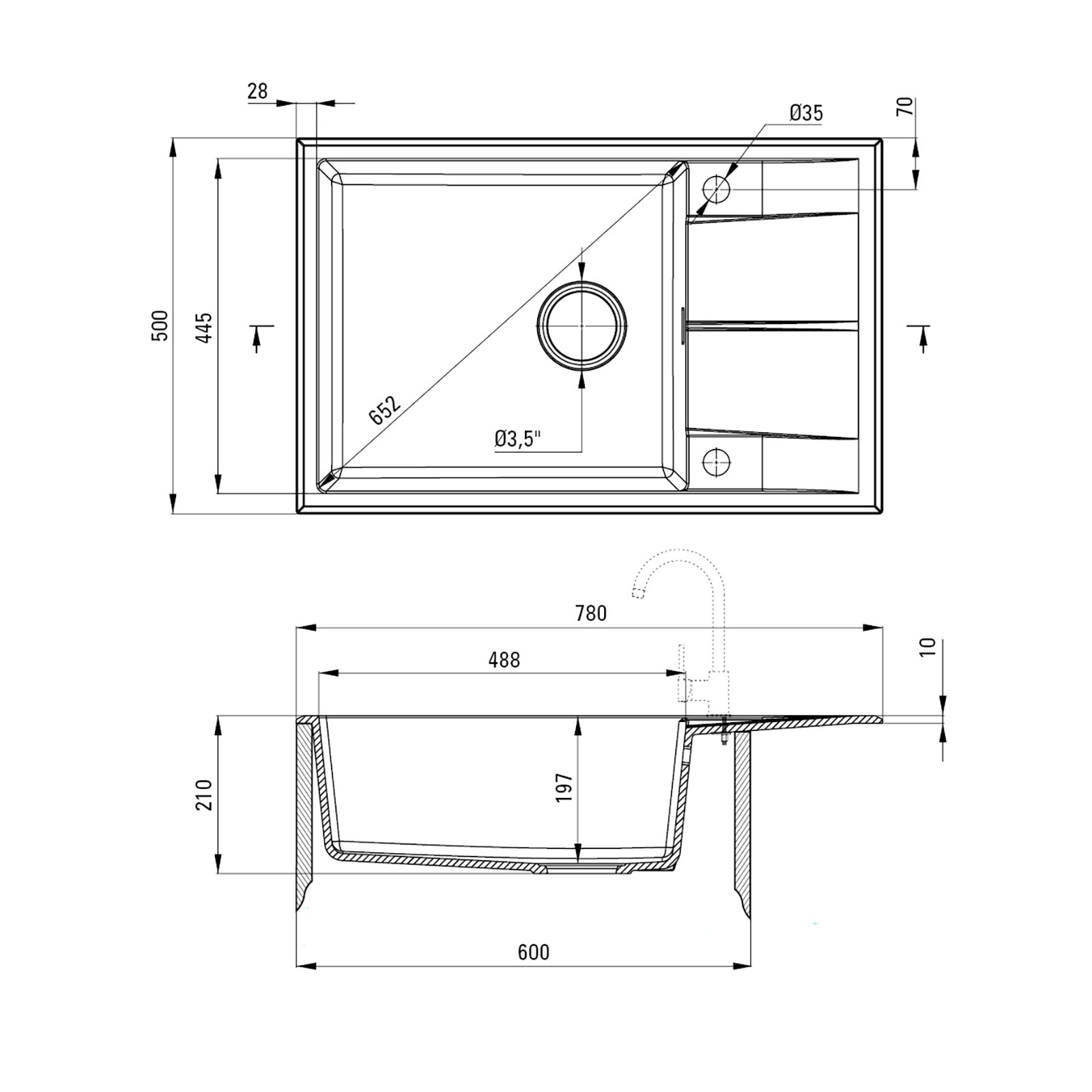 Zlewozmywak 1-komorowy Eridan z jedną przestronną komorą i ociekaczem to produkt, który zachwyca funkcjonalnością, wytrzymałością i designem. Zaprojektowany z myślą o maksymalnym wykorzystaniu przestrzeni, pomieści więcej niż standardowe zlewy o tych samych gabarytach zewnętrznych. Elegancki, szary odcień z połyskującymi drobinkami aluminium świetnie sprawdzi się w kuchniach o stylistyce minimalistycznej, industrialnej i skandynawskiej, kontrastując z ciemnymi, kamiennymi blatami i współgrając z betonowymi, ceglanymi powierzchniami.