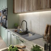 Multifunkcyjny zlewozmywak Magnetic doskonale zorganizuje Ci prace kuchenne. Ociekacz, dwie duże komory i praktyczna półka umiejscowiona między nimi dają maksymalną przestrzeń roboczą. Opcjonalnie zlewozmywak można wyposażyć w koszyczki, reling i haczyk. Szare, metaliczne wykończenie stanowi stonowany tło dla żywych kolorów. W połączeniu z jasnymi barwami daje wrażenie spokoju i wyciszenia. Szary zlewozmywak doskonale uzupełni kuchnie zarówno tą w stylu skandynawskim, jak i nowoczesnym.