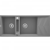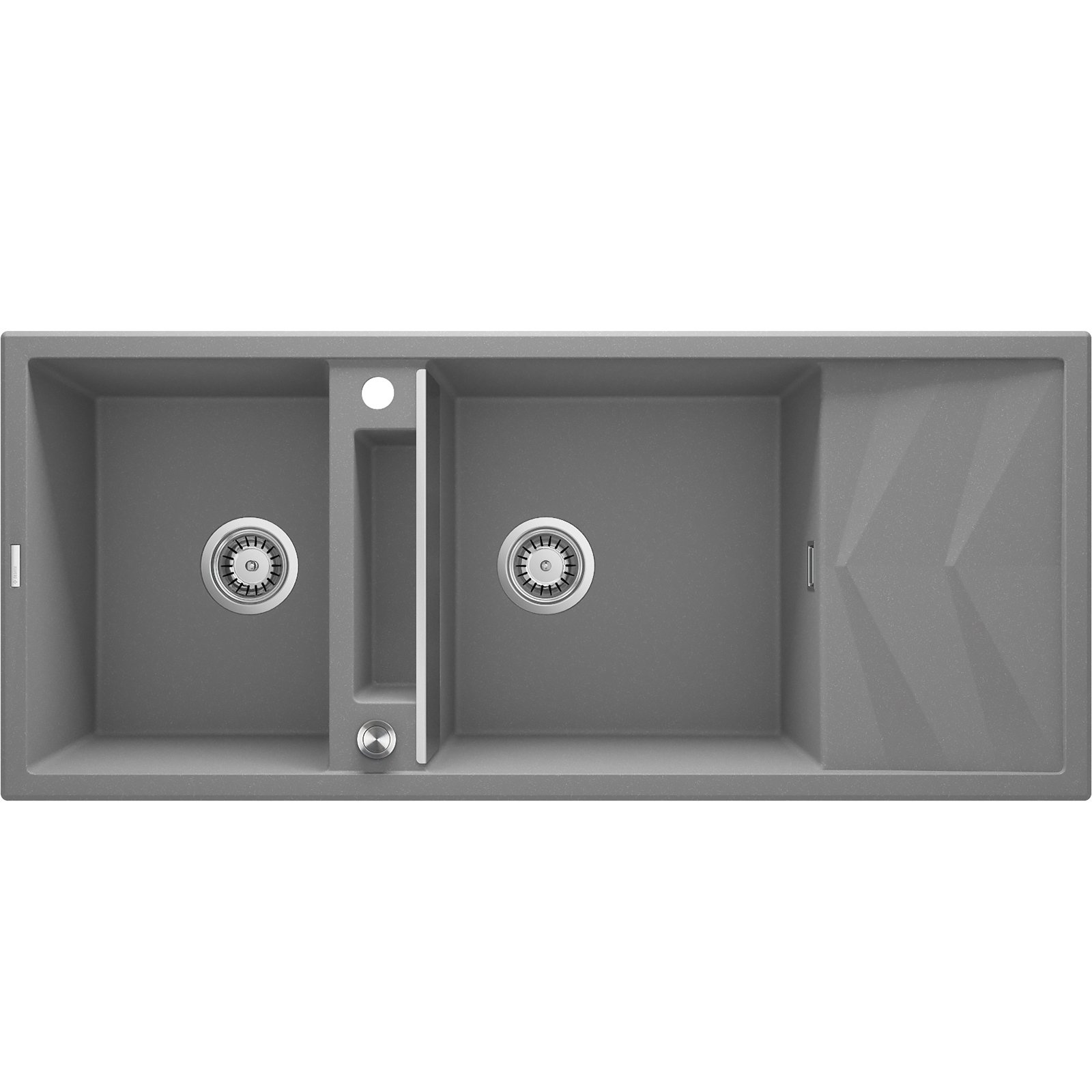 Zlewozmywak granitowy MAGNETIC szary metalik 2-komorowy magnetyczny z ociekaczem