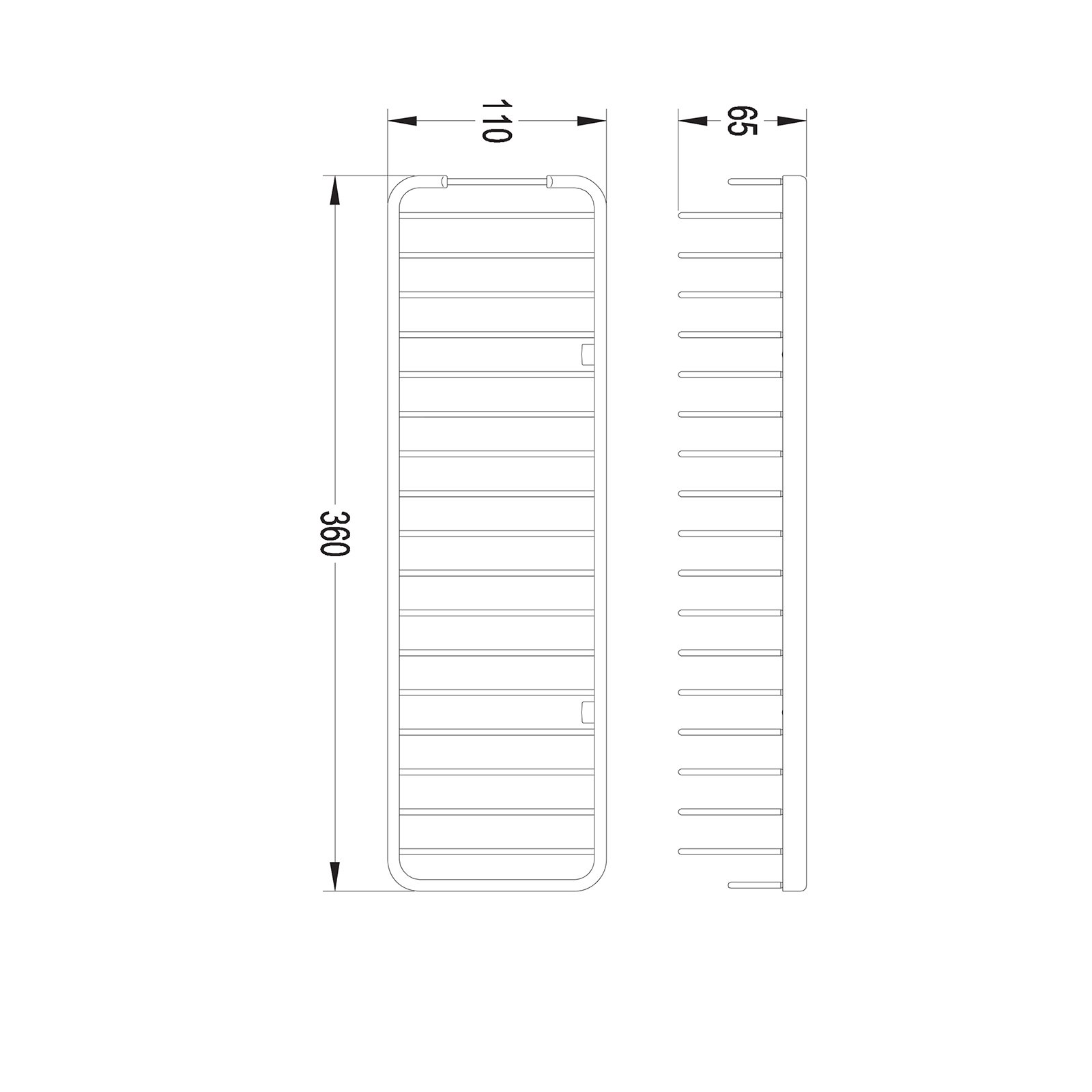 - szerokość: 36 cm, wysokość: 7 cm, odległość od ściany: 11 cm