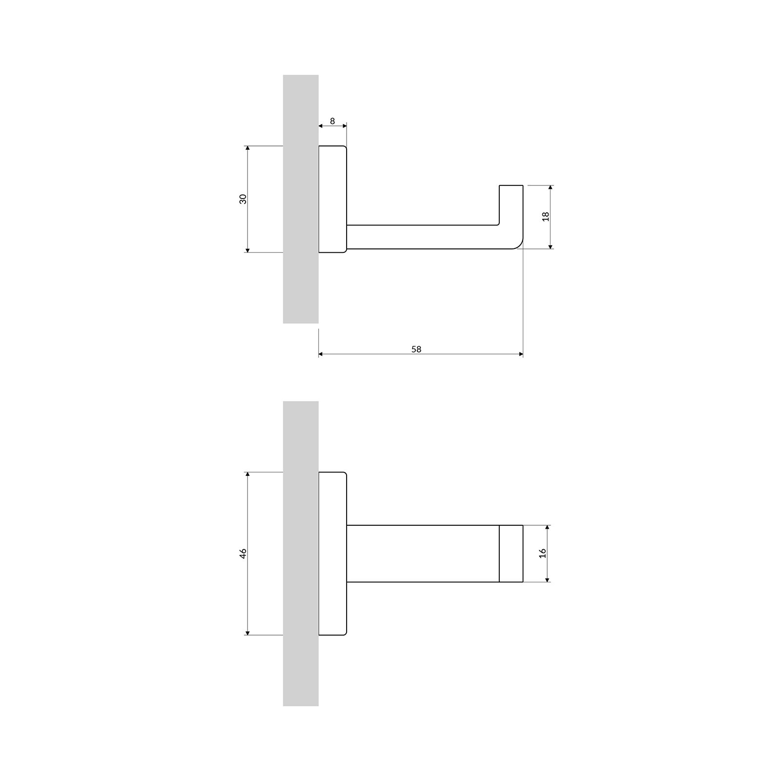 - szerokość: 5 cm, wysokość: 3 cm, odległość od ściany: 6 cm