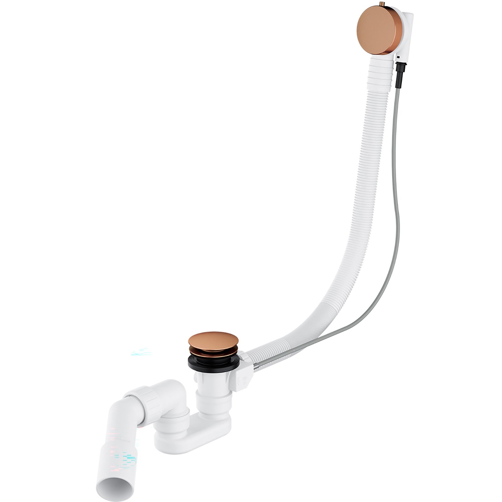 Syfon wannowy przelewowo-odpływowy miedź szczotkowana.