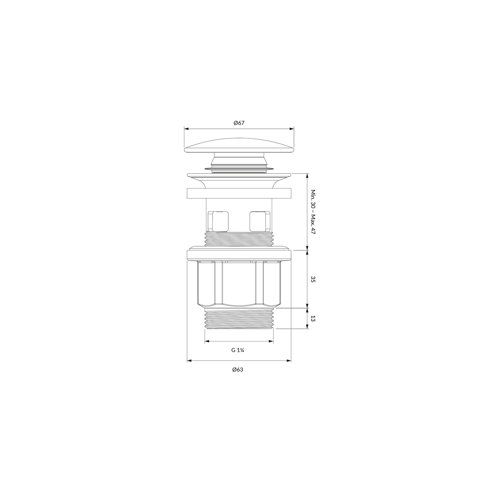 Korek KLIK-KLAK do umywalki z przelewem chrom połysk.