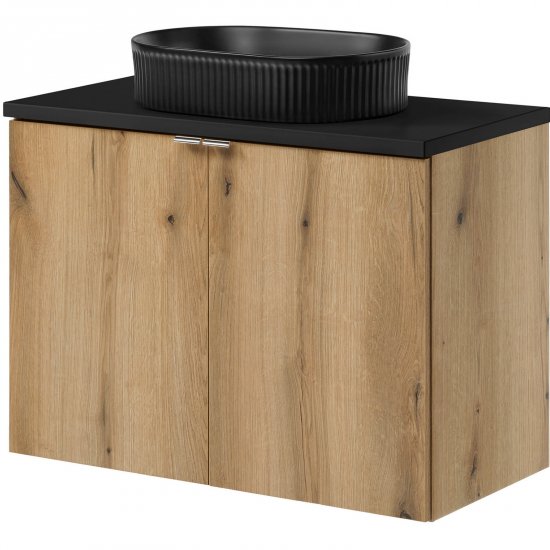 Zestaw mebli NOVA OAK szafka z drzwiami z blatem BLACK 80 cm, umywalka BEYOND BM